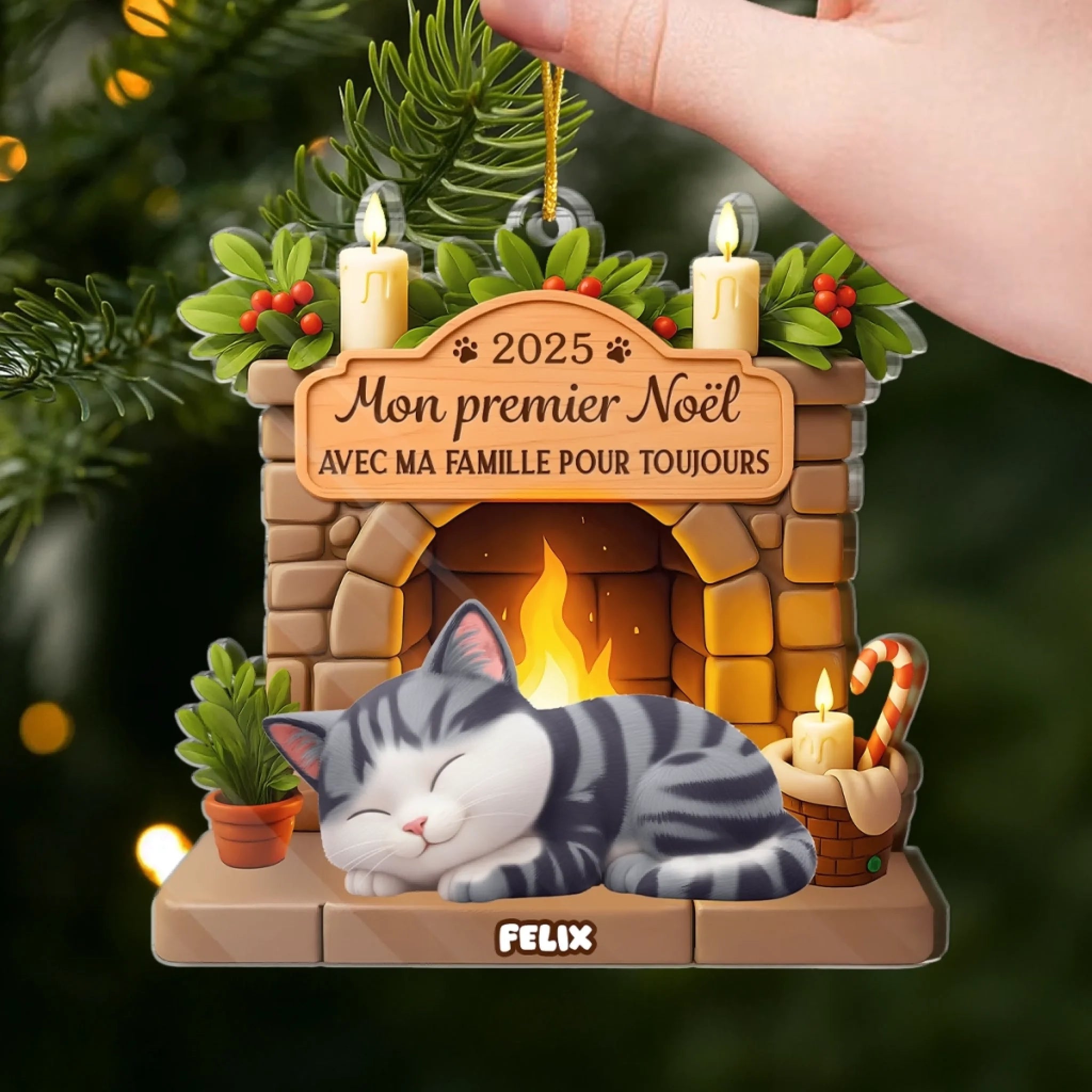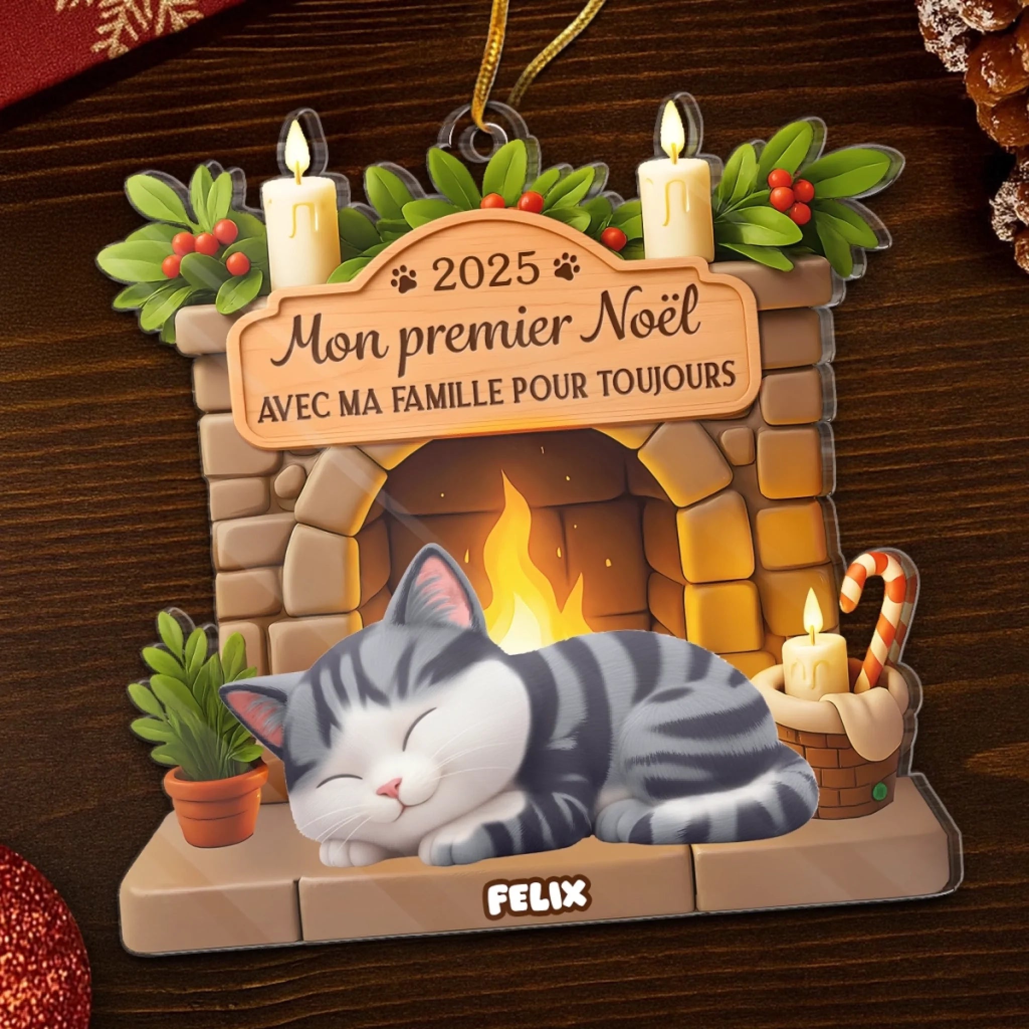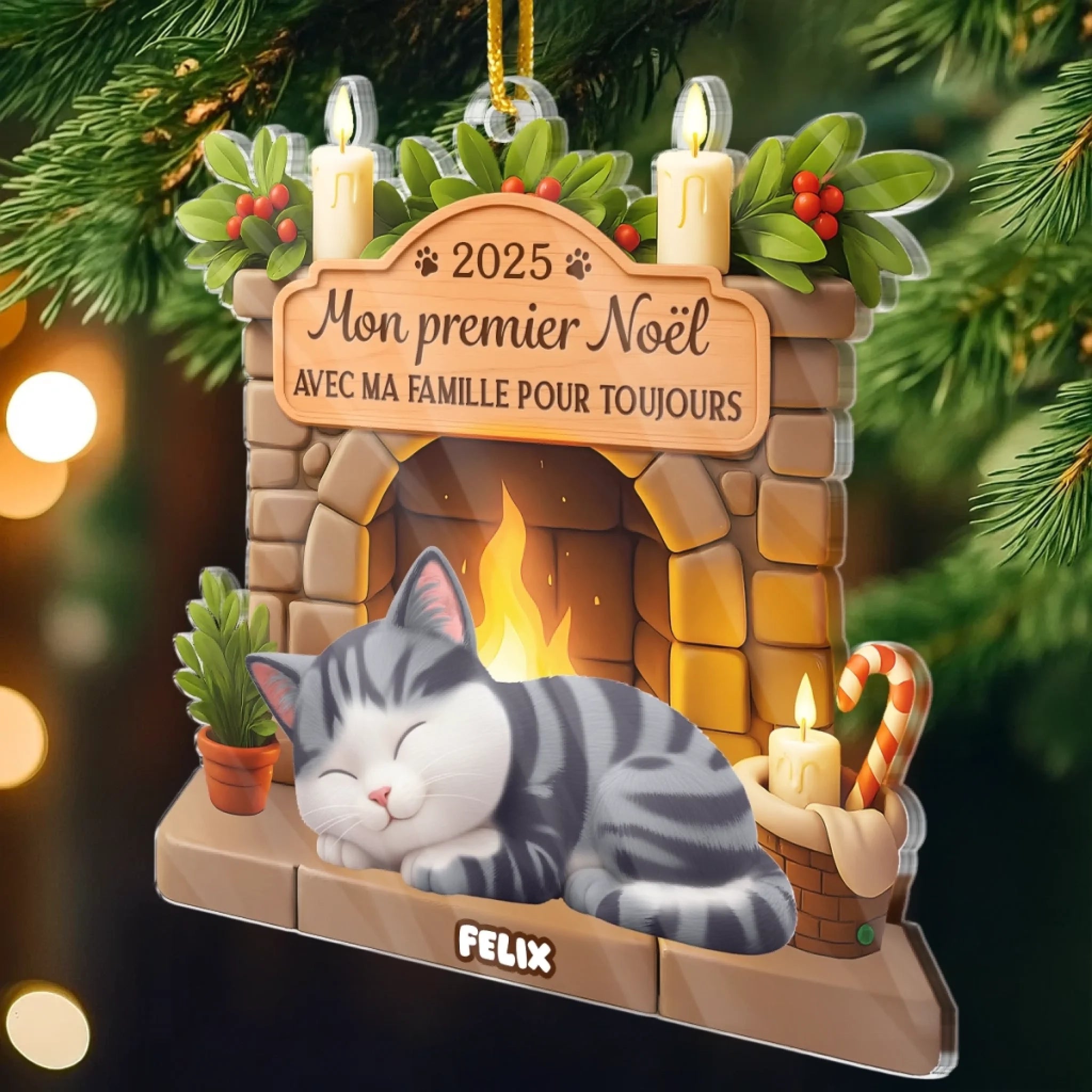 Ornement En Acrylique Premier Noël Personnalisé - Cadeaux De Noël Et D’Anniversaire Pour Amoureux Des Chats, Maman Et Papa Chats - Avec Ma Famille Pour Toujours