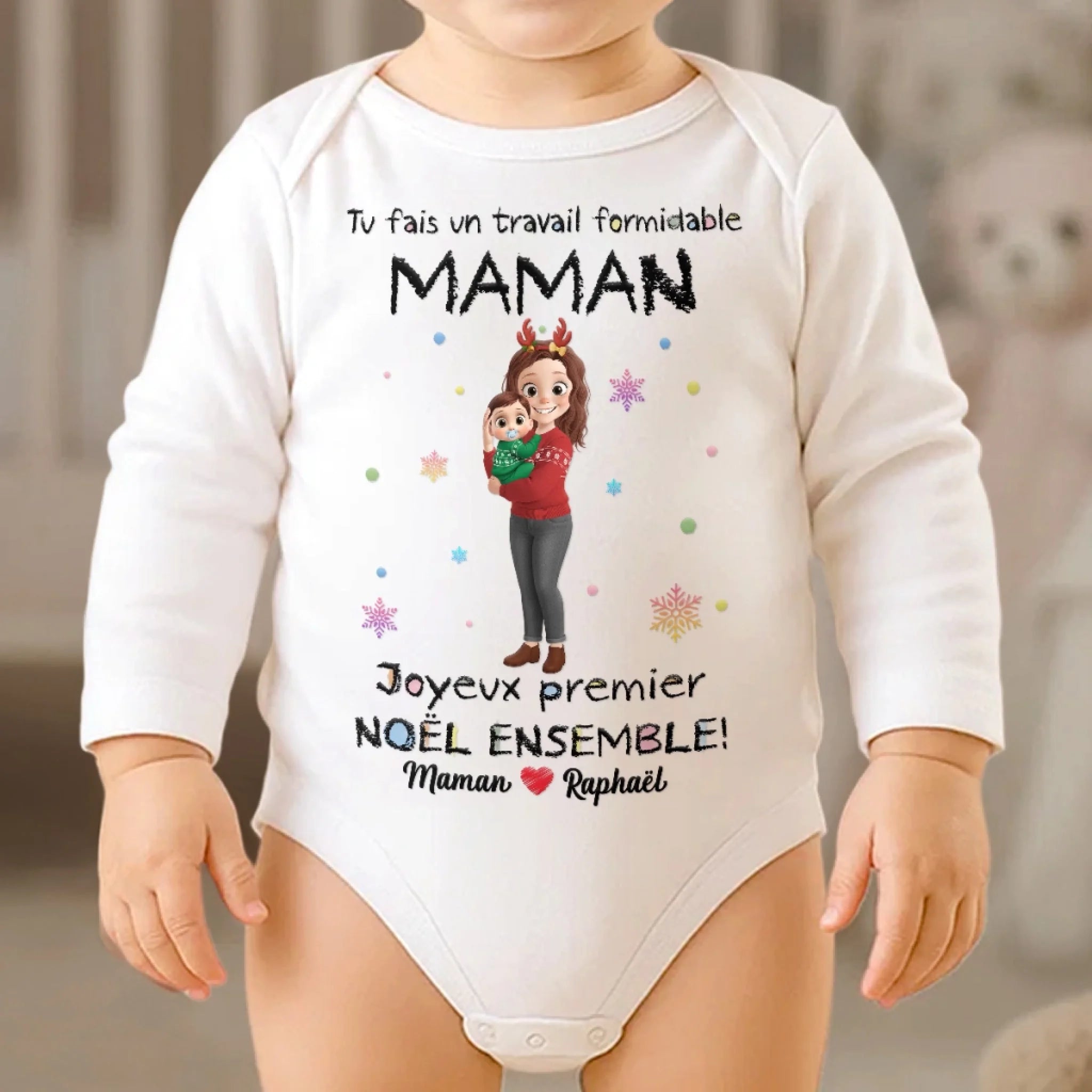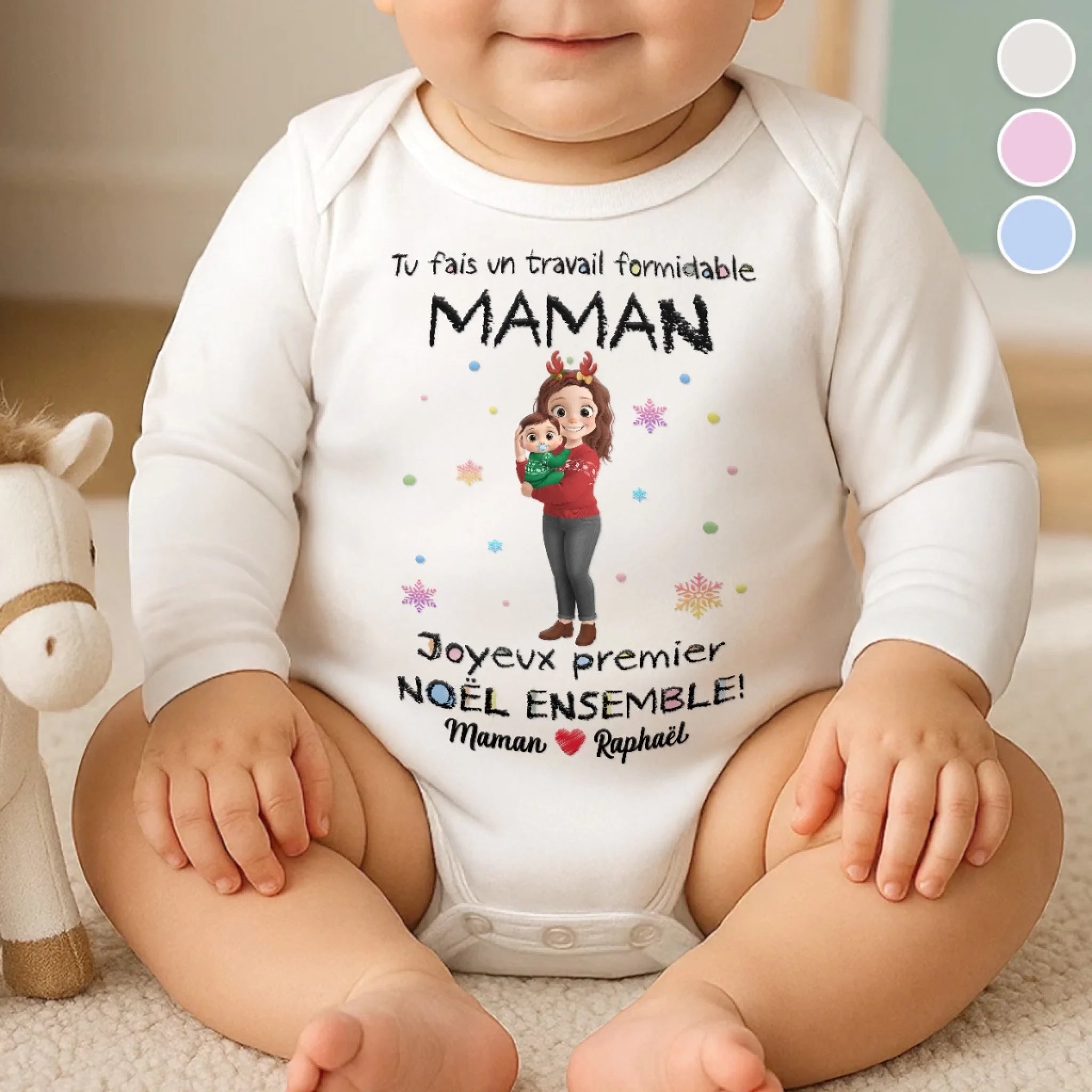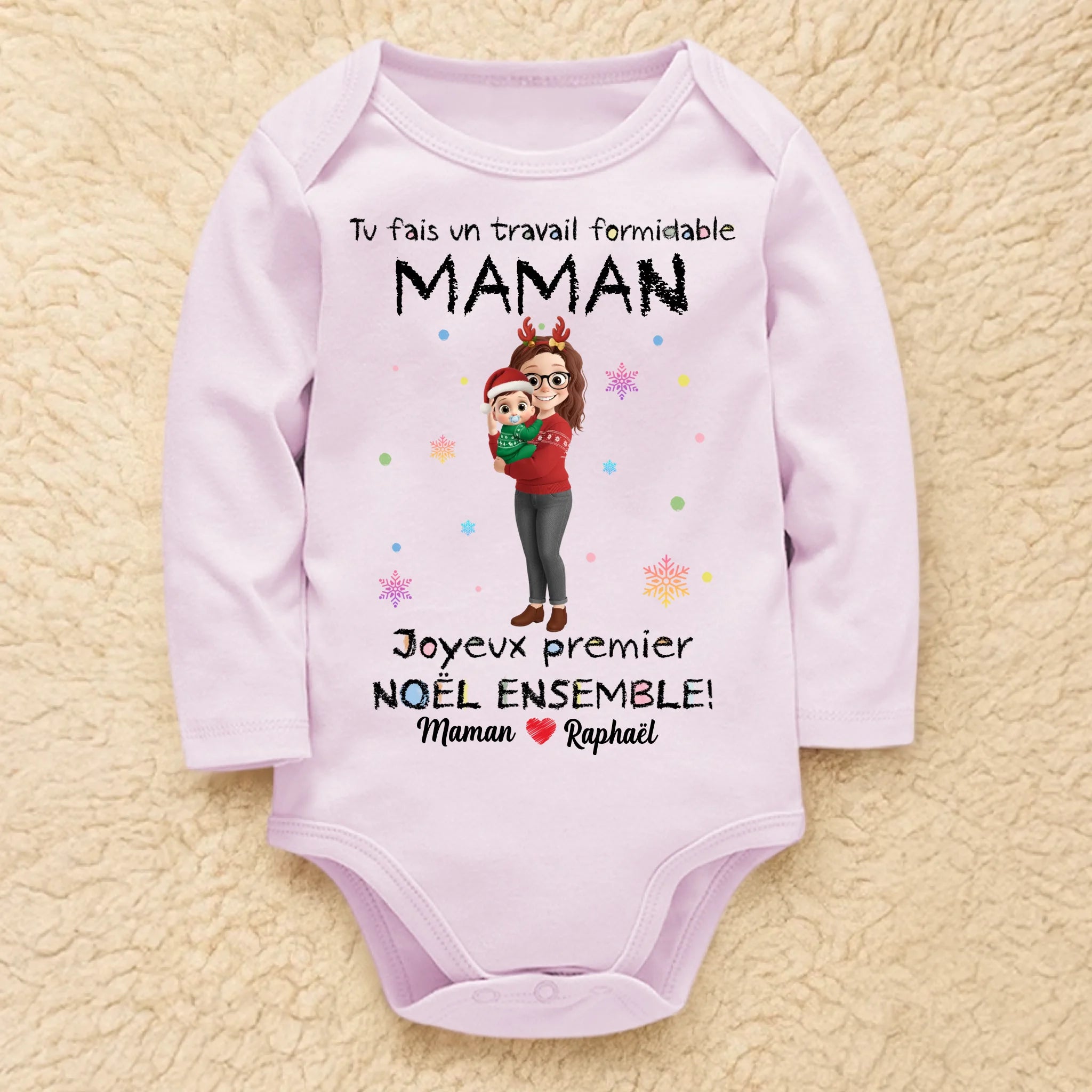 Body Bébé À Manches Longues Personnalisé Pour Le Premier Noël – Cadeaux Personnalisés De Baby Shower Et De Révélation De Genre Pour Nouvelles Mamans, Nouveaux Papas, Nouveaux Parents – Petites Mains, Grand Amour
