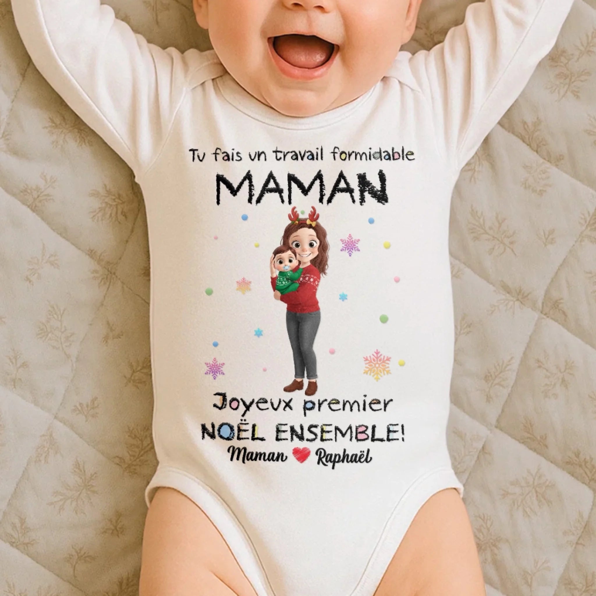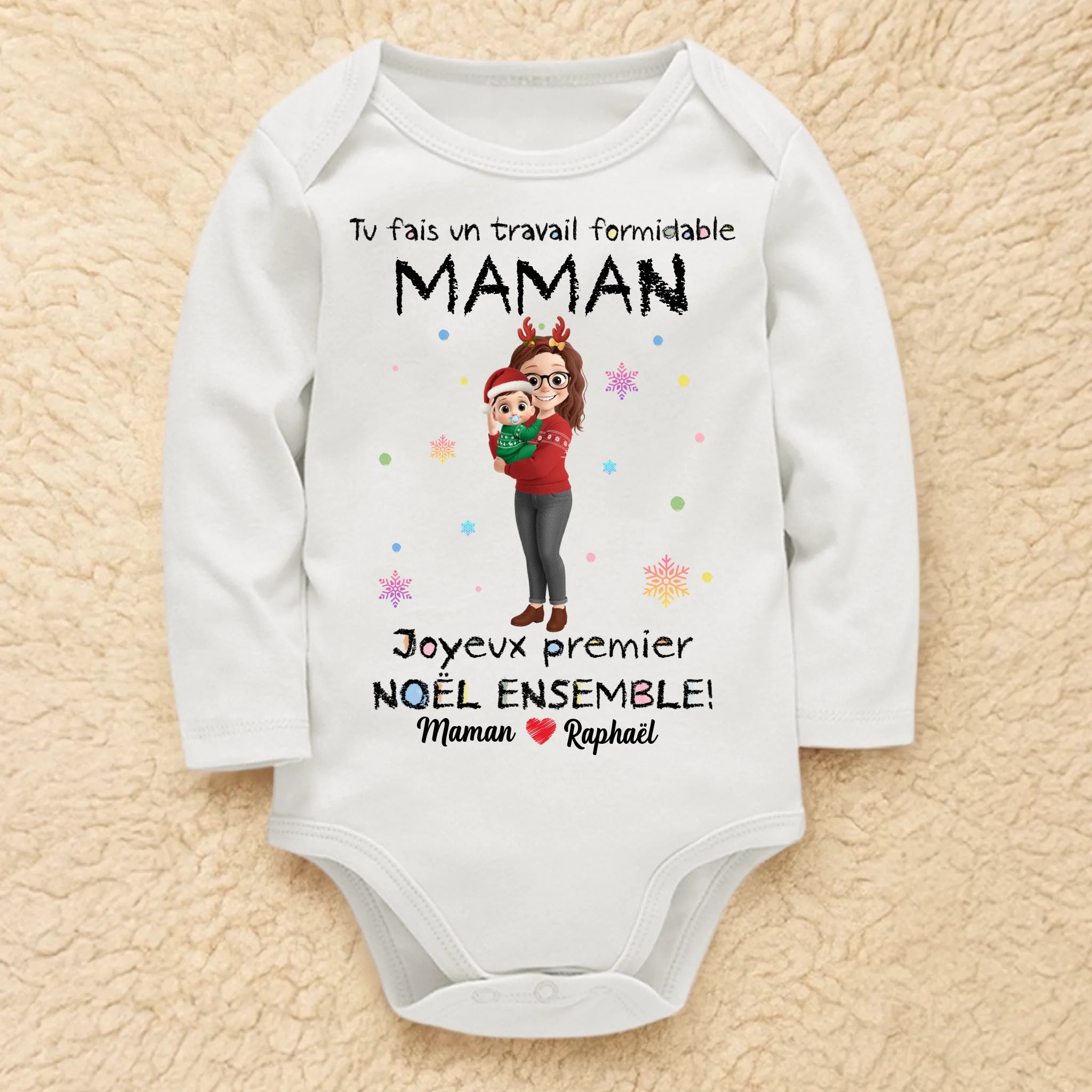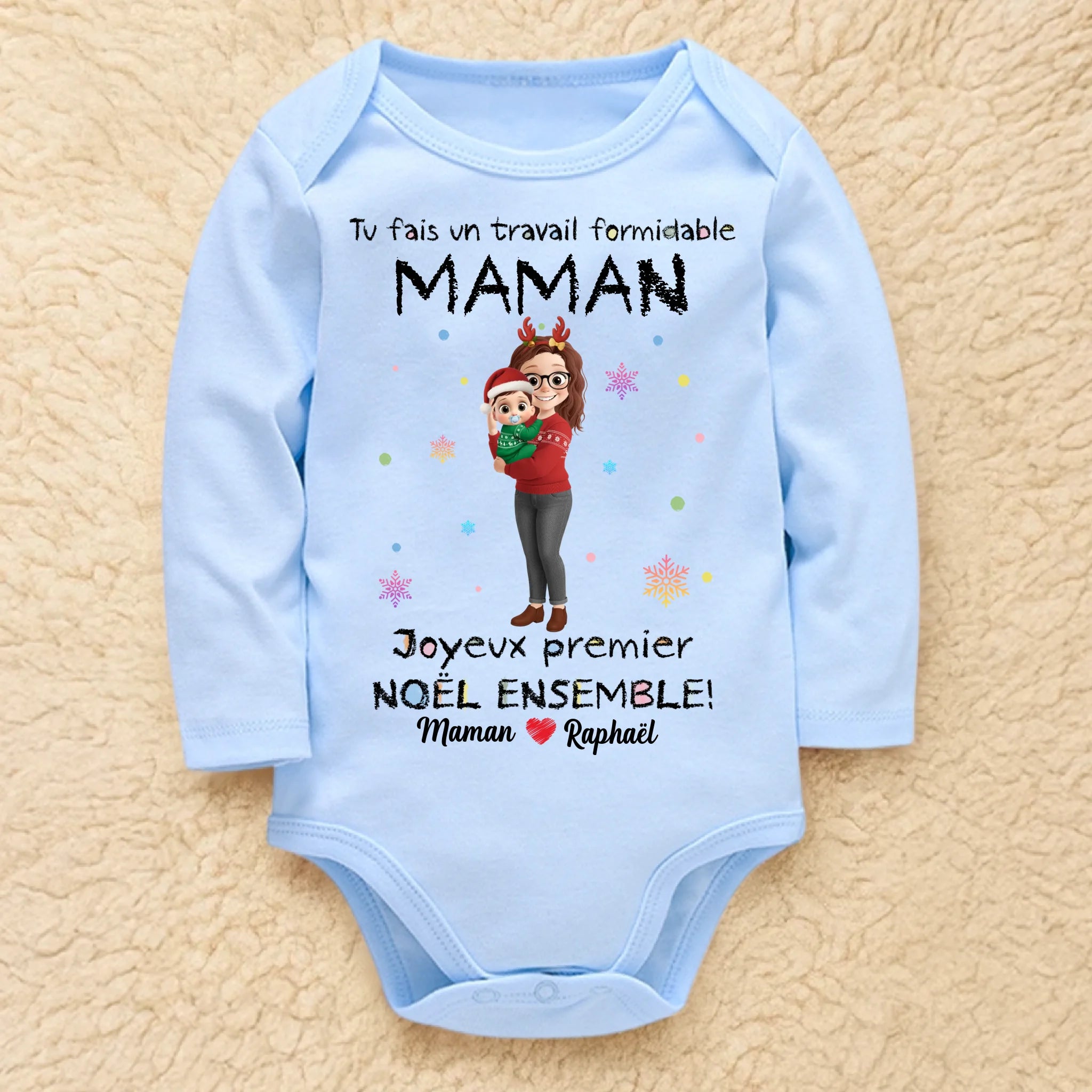 Body Bébé À Manches Longues Personnalisé Pour Le Premier Noël – Cadeaux Personnalisés De Baby Shower Et De Révélation De Genre Pour Nouvelles Mamans, Nouveaux Papas, Nouveaux Parents – Petites Mains, Grand Amour