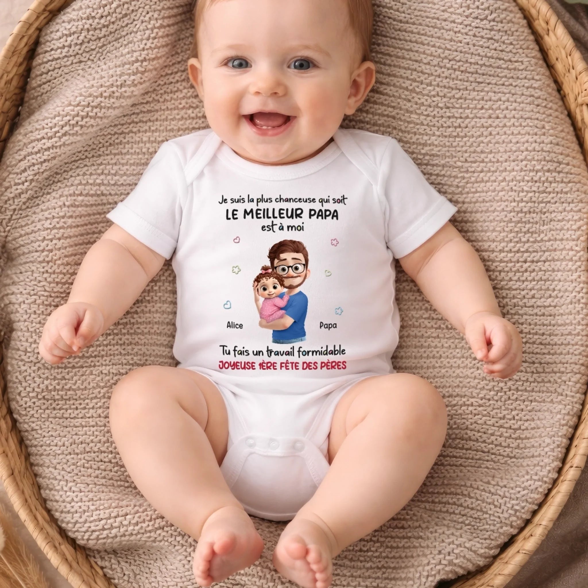 Body Bébé Personnalisé – Cadeau Pour La Première Fête Des Pères - Je Suis La Plus Chanceuse Qui Soit