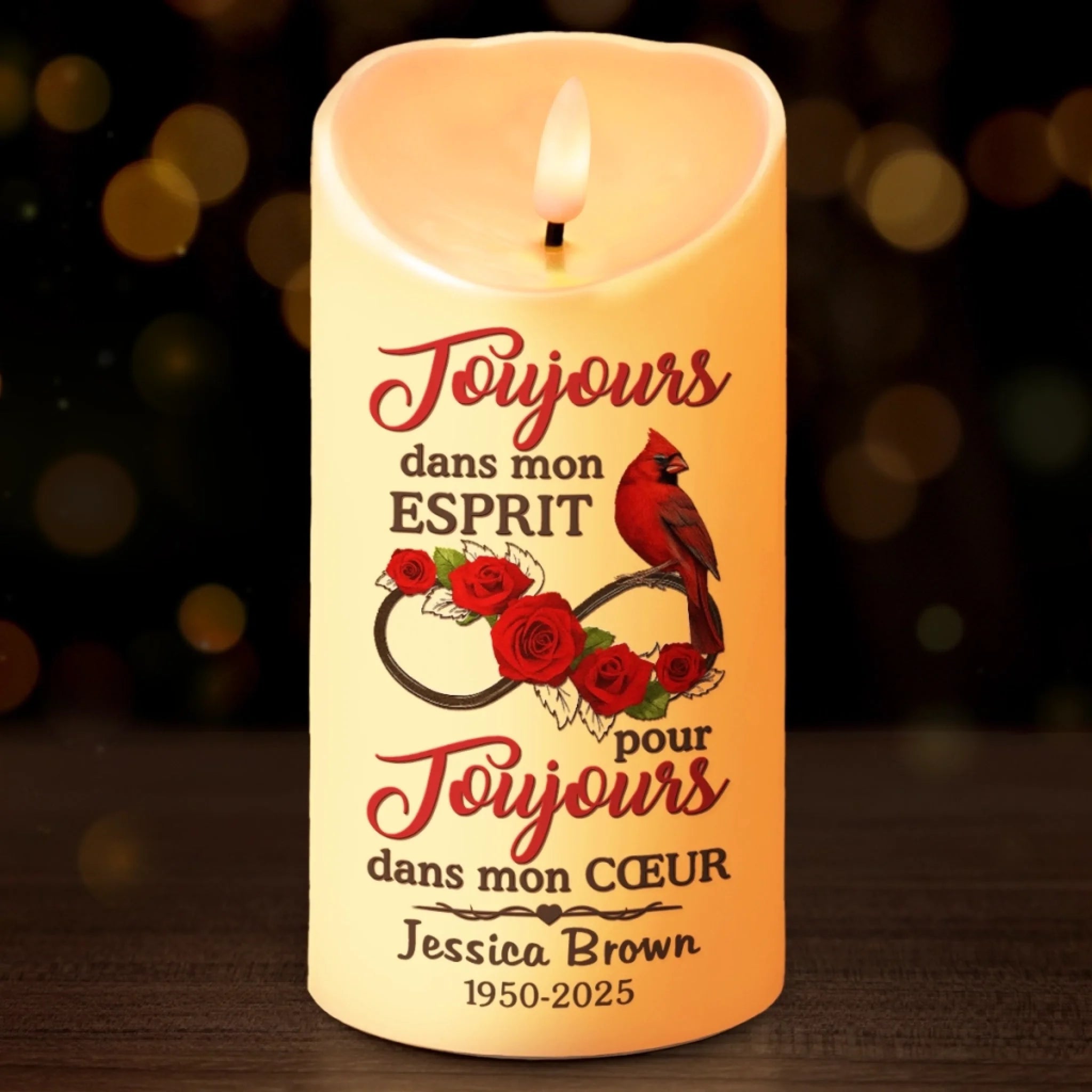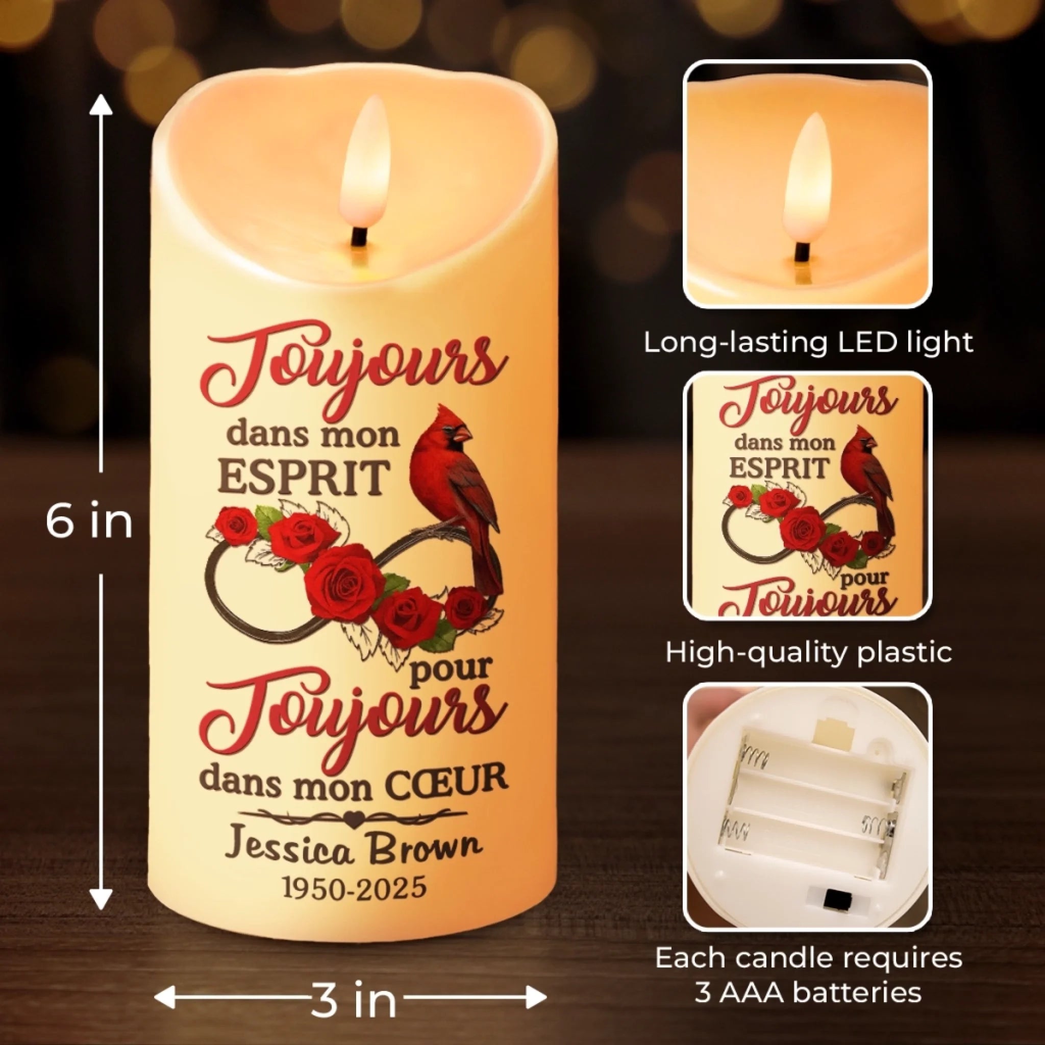 Matériau:Fabriqué en plastique de haute qualité avec une flamme LED vacillante, apportant chaleur et un hommage durable dans votre maison.