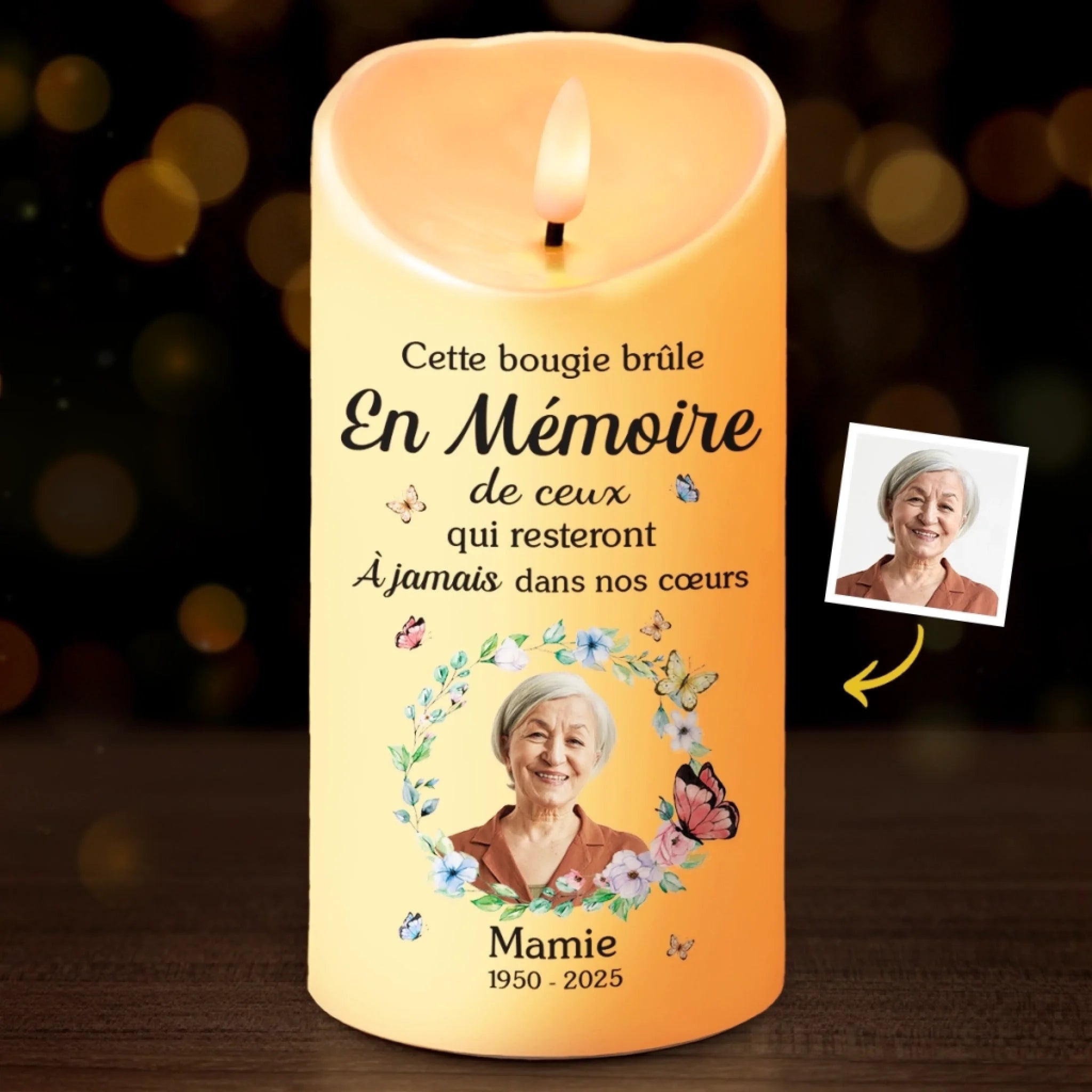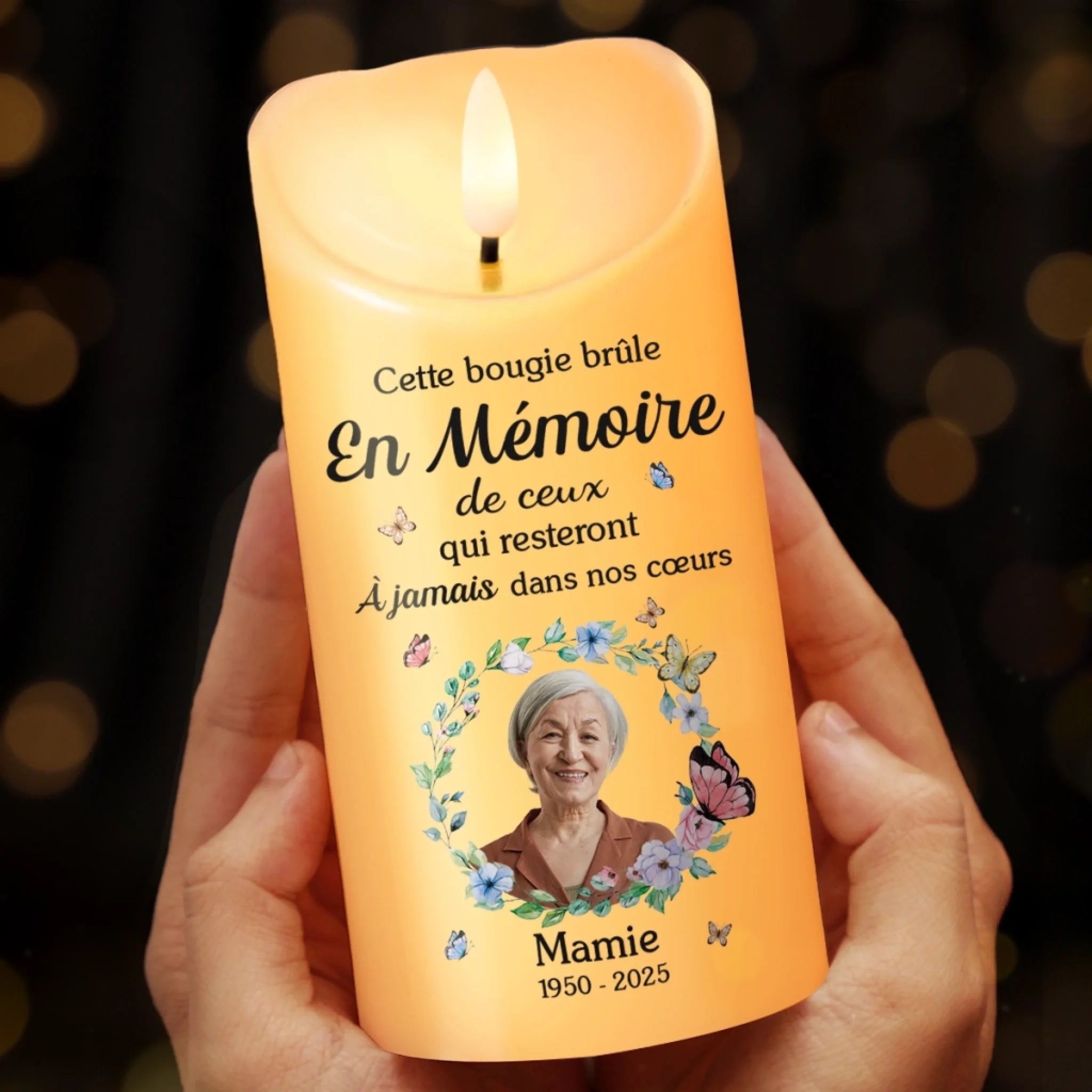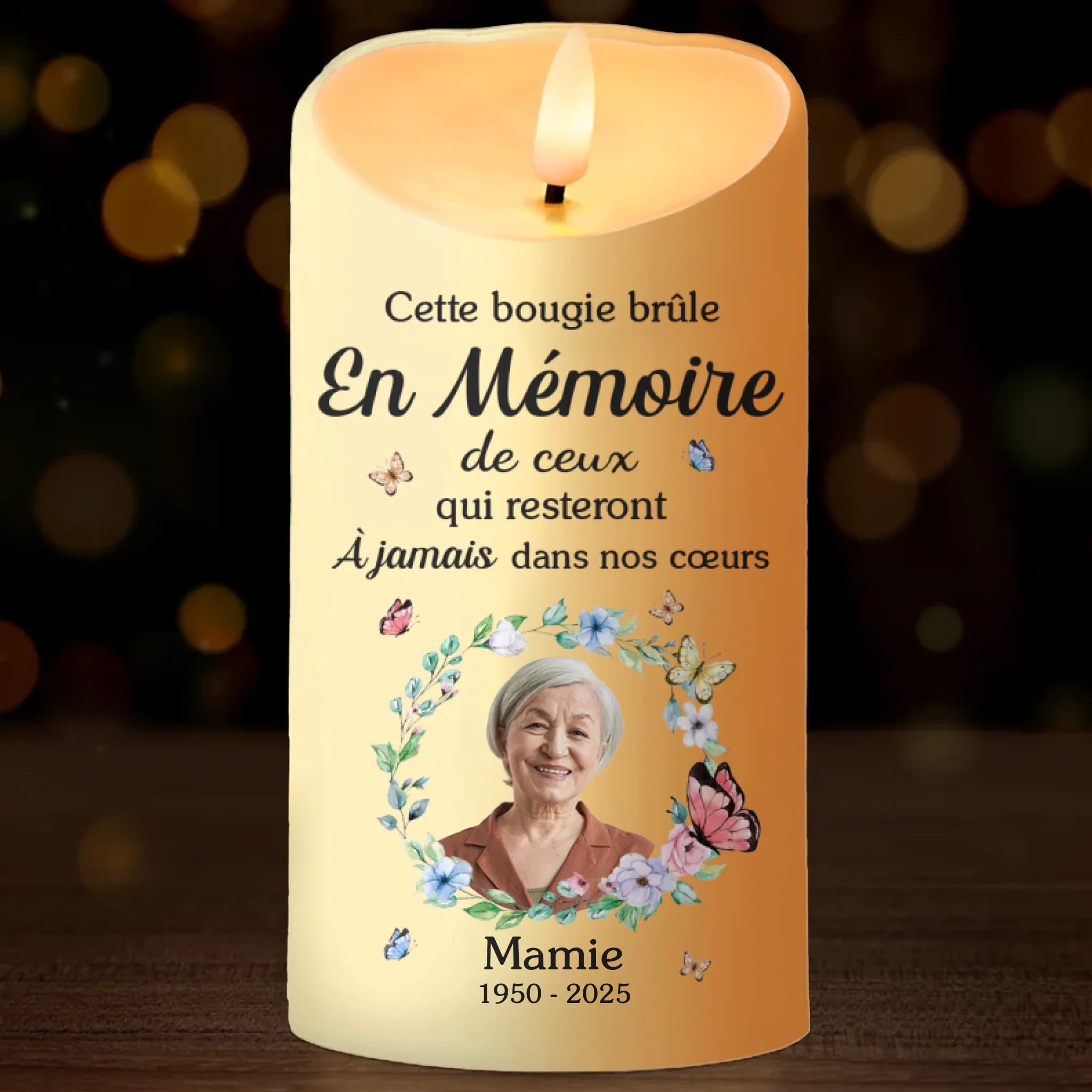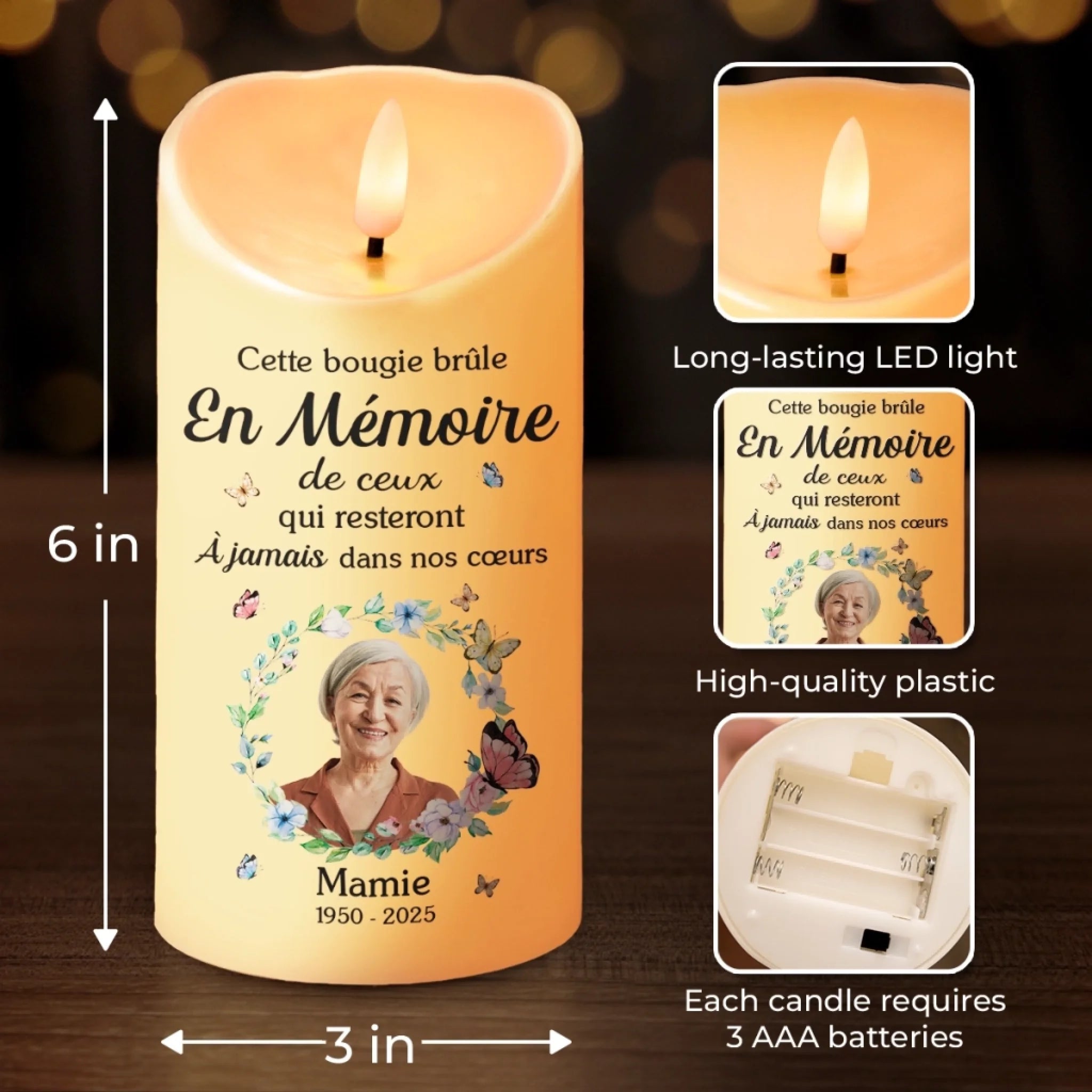 Matériau:Fabriqué en plastique de haute qualité avec une flamme LED vacillante, apportant chaleur et un hommage durable dans votre maison.