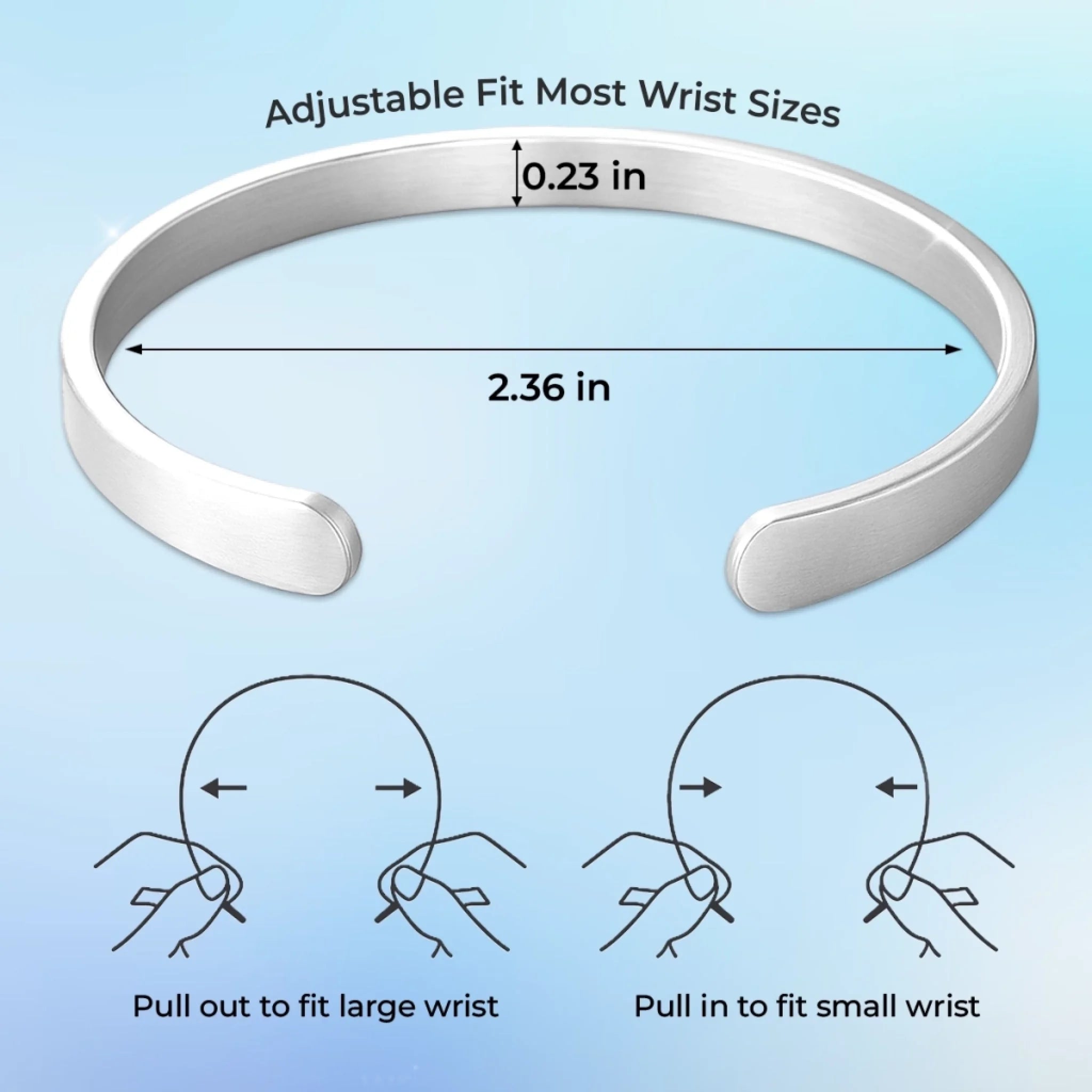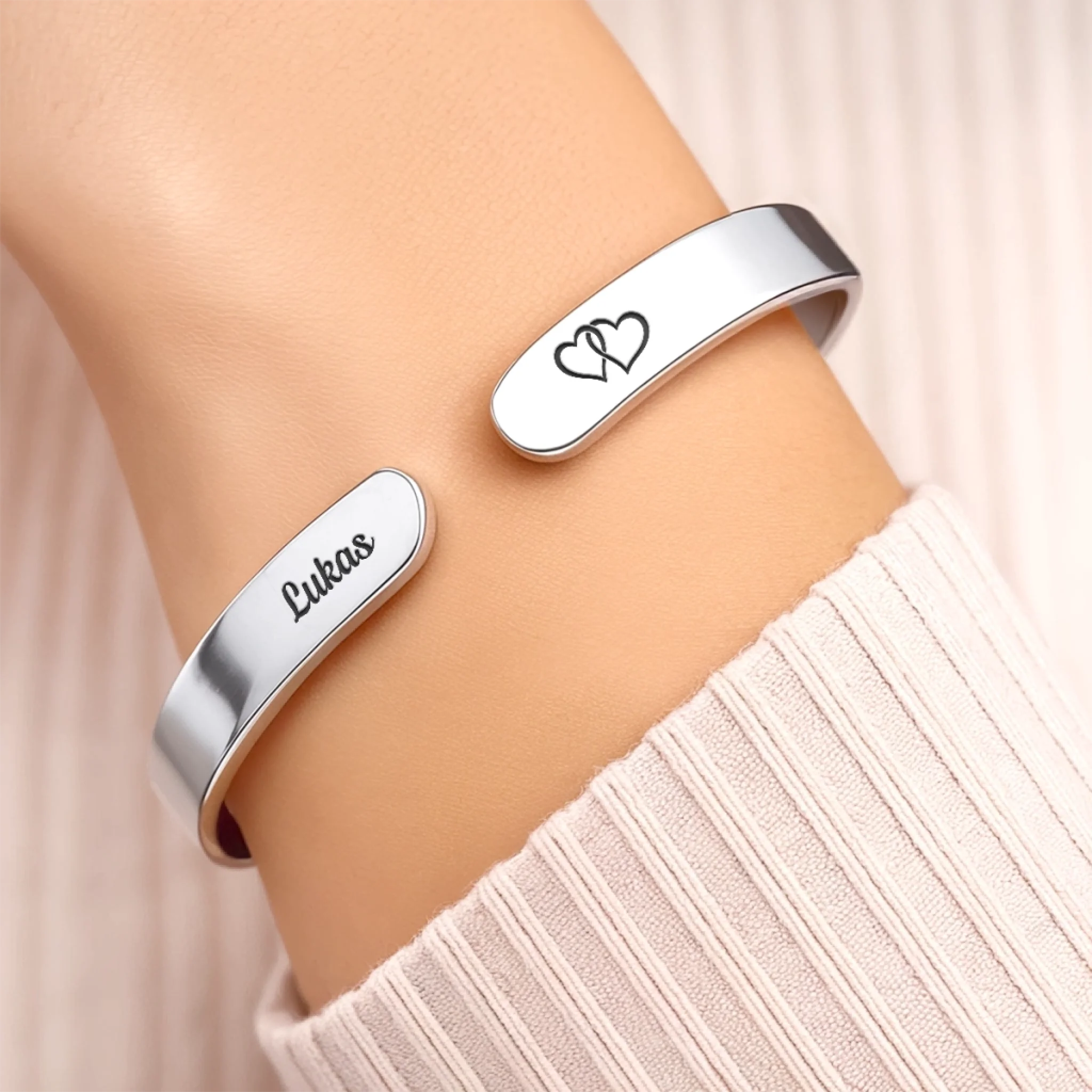 Un bracelet manchette gravé est un accessoire raffiné et significatif, conçu pour ajouter une touche personnelle à votre style. Avec son design élégant et sa gravure personnalisée, il devient une pièce intemporelle à chérir. C'est le cadeau parfait pour toute occasion : anniversaires, vacances, graduations, Saint-Valentin, Fête des Mères, Fête des Pères, et juste parce que ! Que ce soit pour des amis, de la famille ou cette personne spéciale, ce cadeau polyvalent est garanti d'apporter de la joie et de créer des souvenirs durables.
