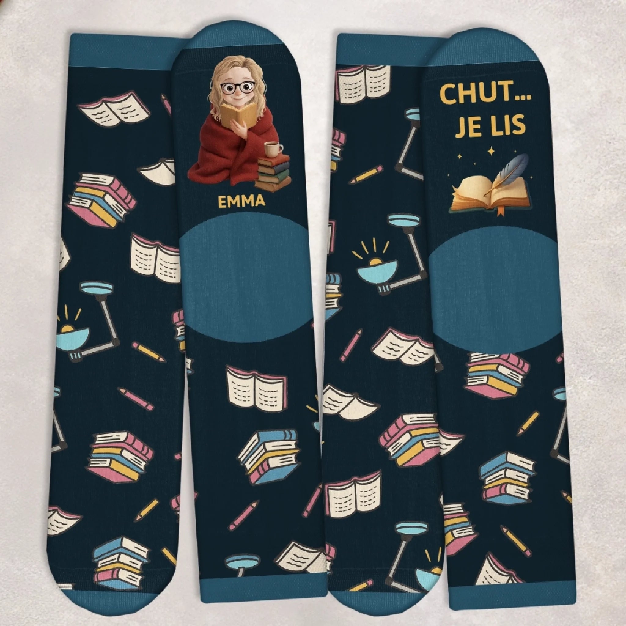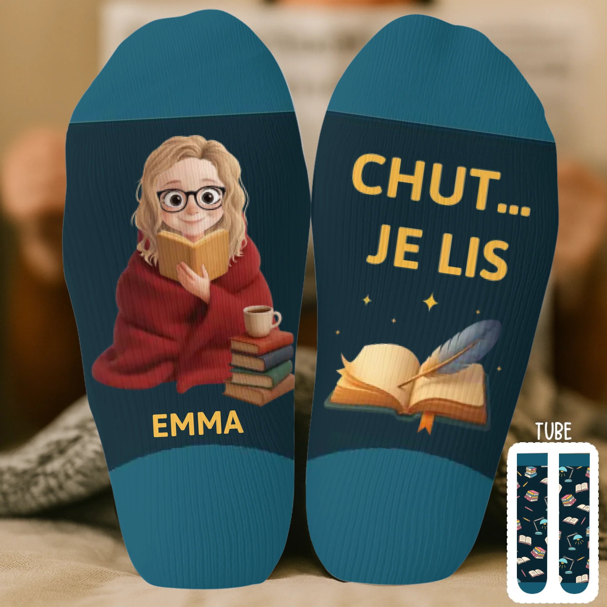 Chaussettes Personnalisées – Cadeaux Personnalisés pour Amoureux des Livres, Rats de Bibliothèque et Lecteurs Passionnés – Juste Une Fille Perdue Dans Ses Livres