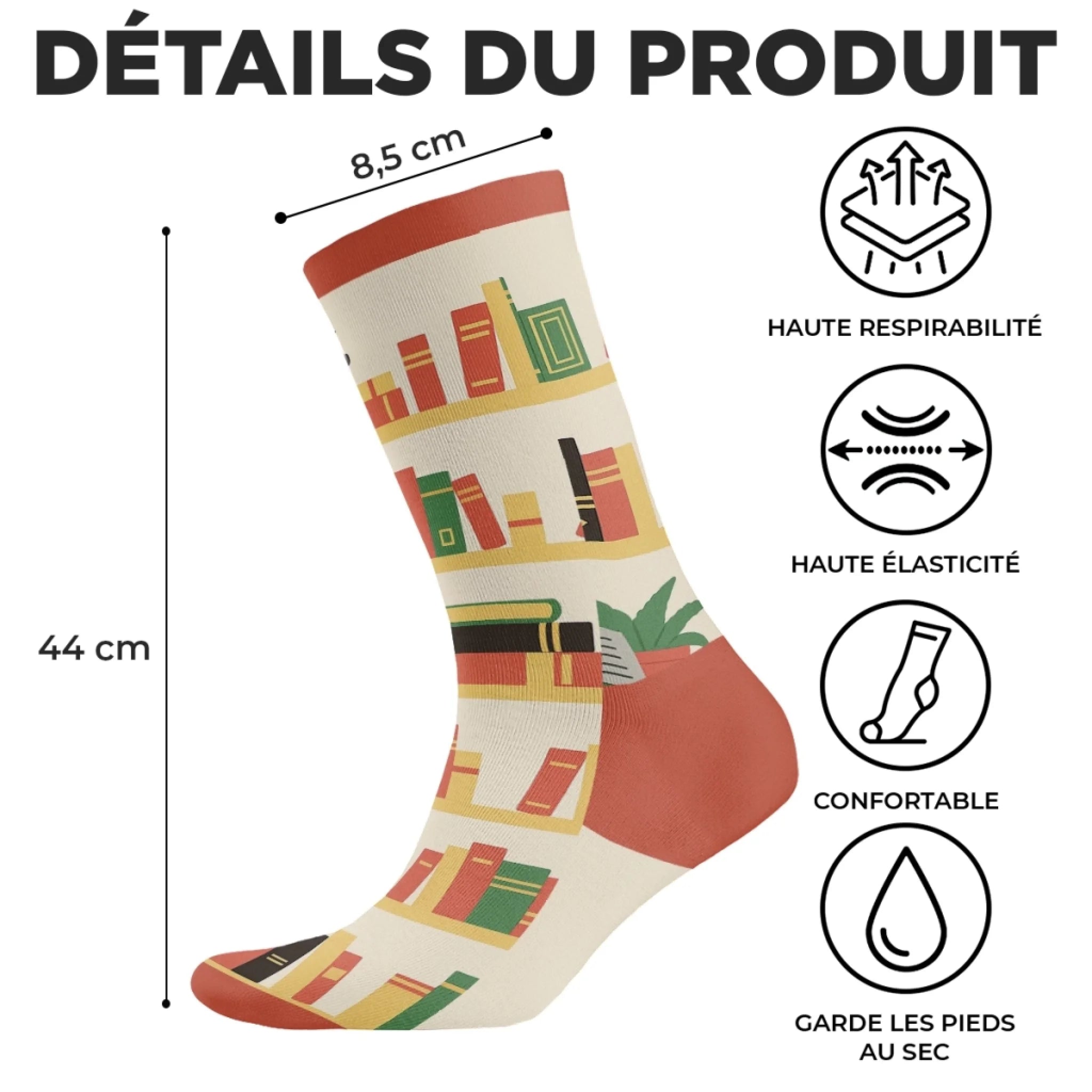 Chaussettes Personnalisées – Cadeaux Pour Amoureux Des Livres, Rats De Bibliothèque, Lecteurs – Des Aventures Entre Ces Pages