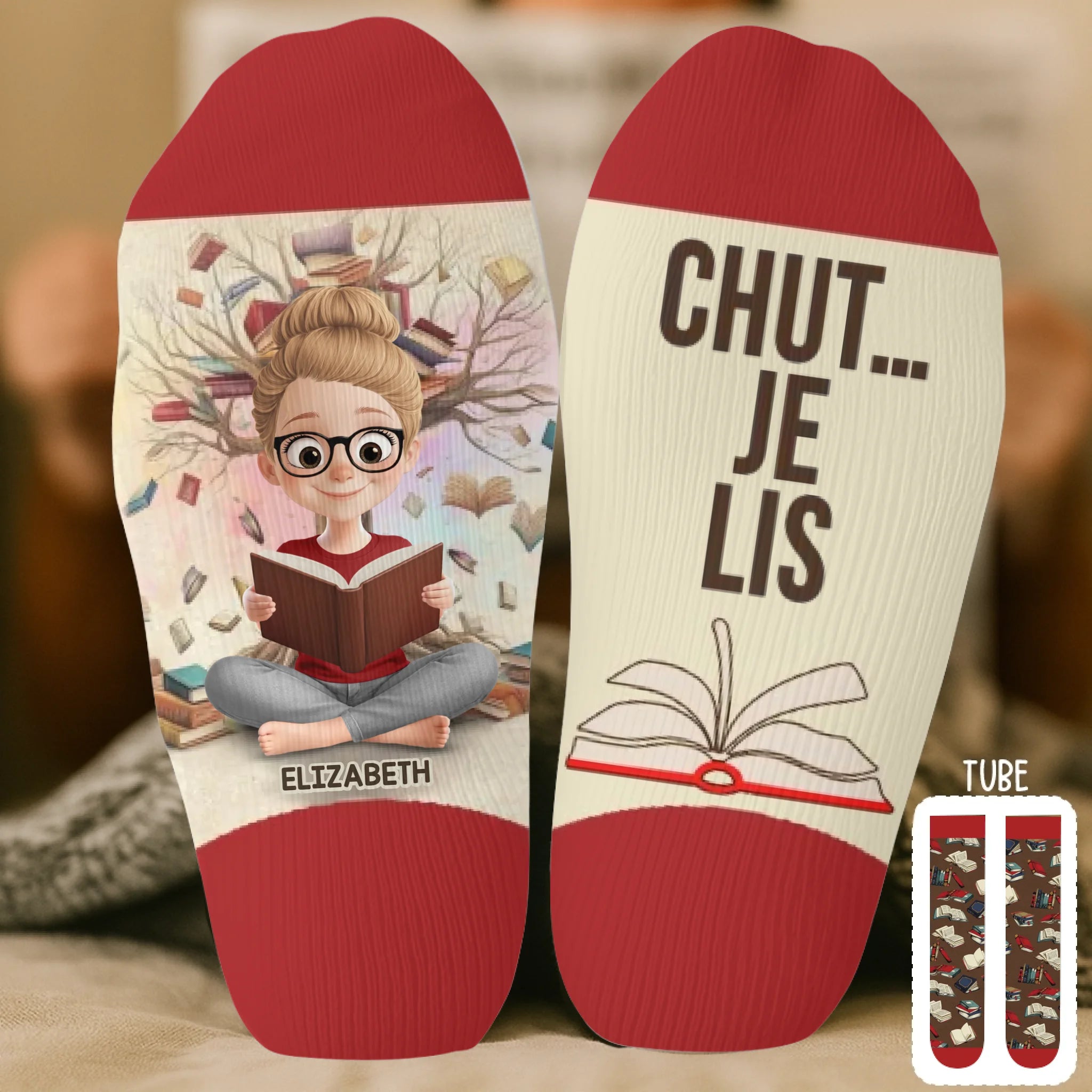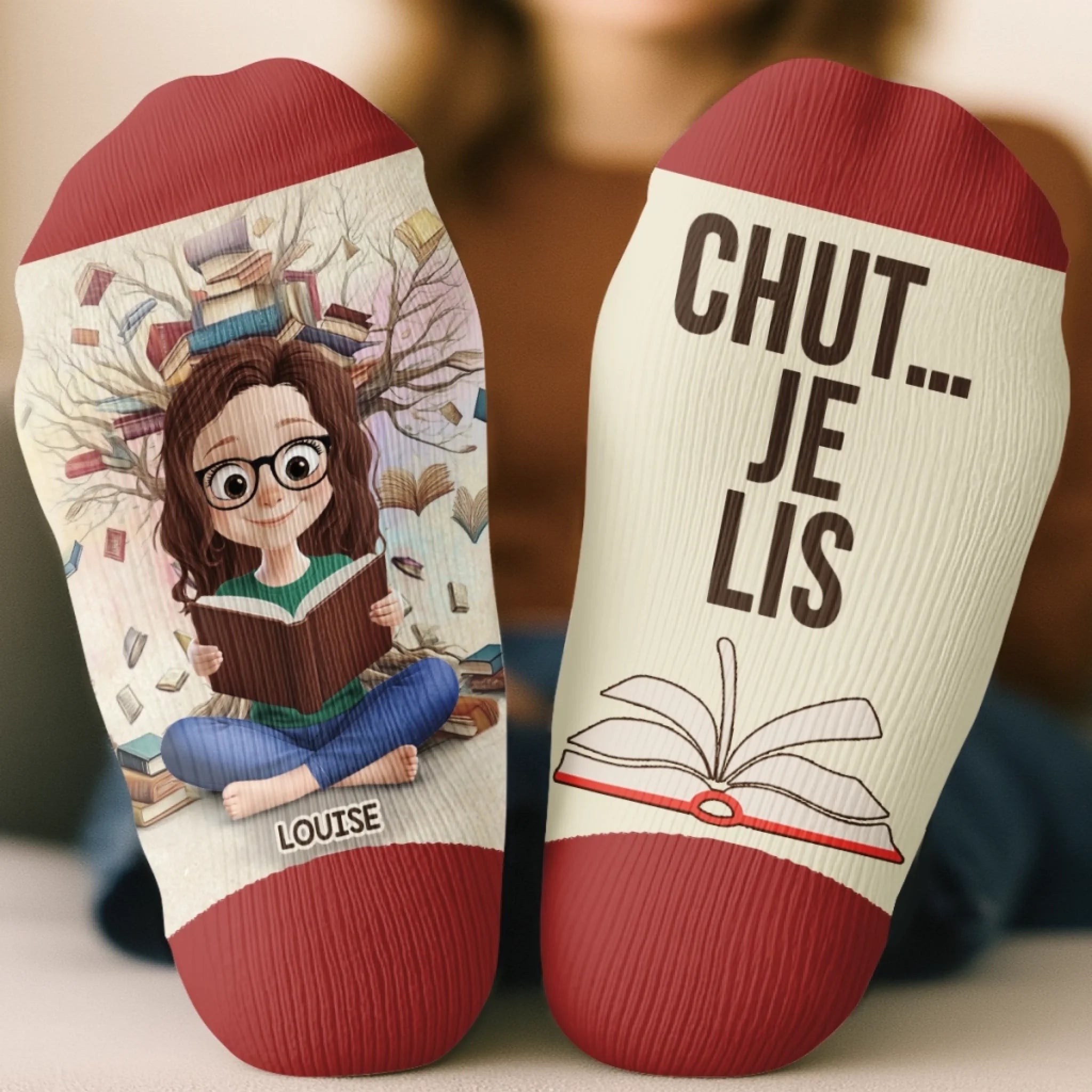 Chaussettes Personnalisées - Cadeaux Pour Amoureux Des Livres, Rats De Bibliothèque, Lecteurs - Marque-Page De Mon Cœur