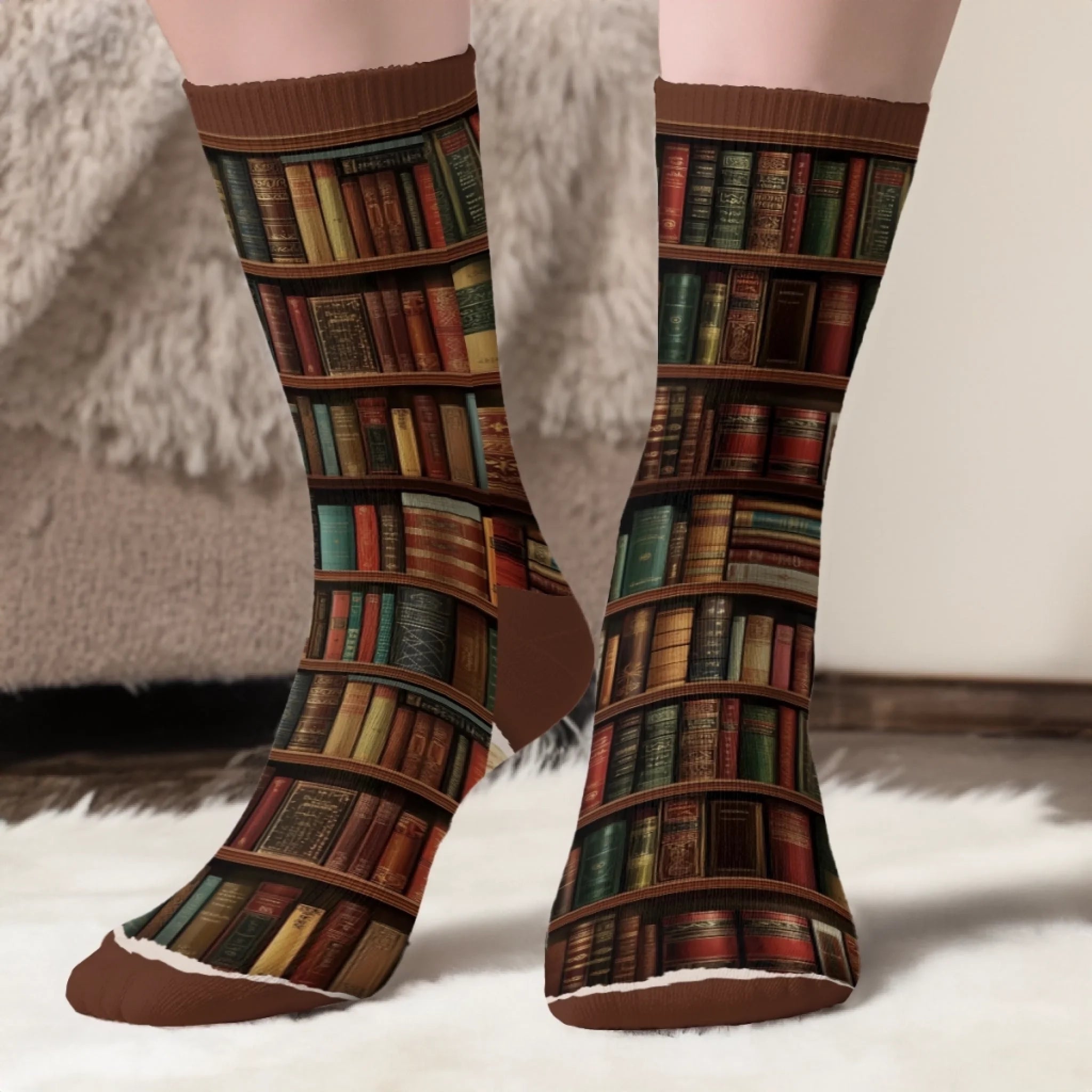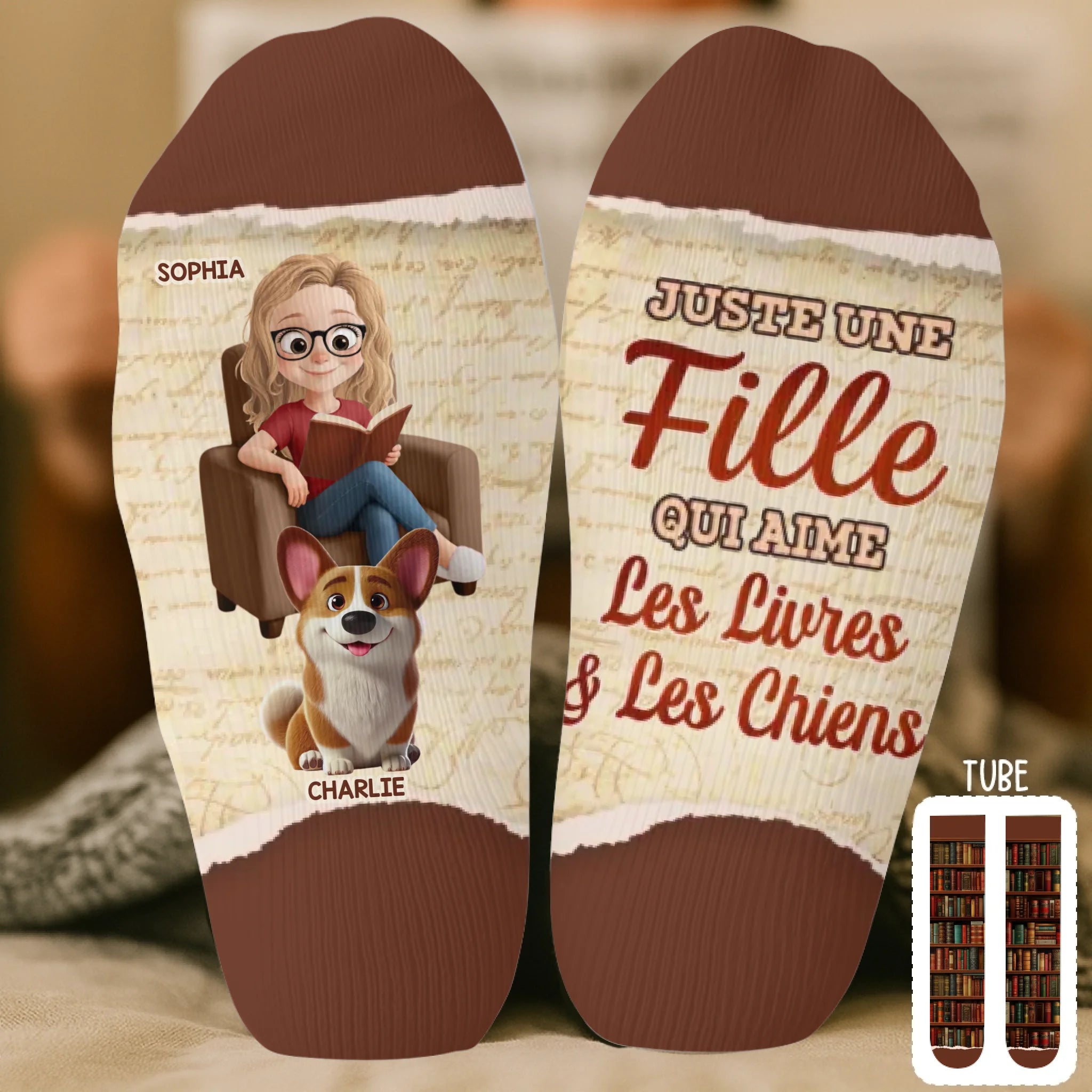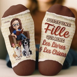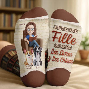 Chaussettes Personnalisées - Cadeaux Pour Amoureux Des Livres, Rats De Bibliothèque, Papa Et Maman Chiens - Des Pages Avec Des Empreintes De Pattes