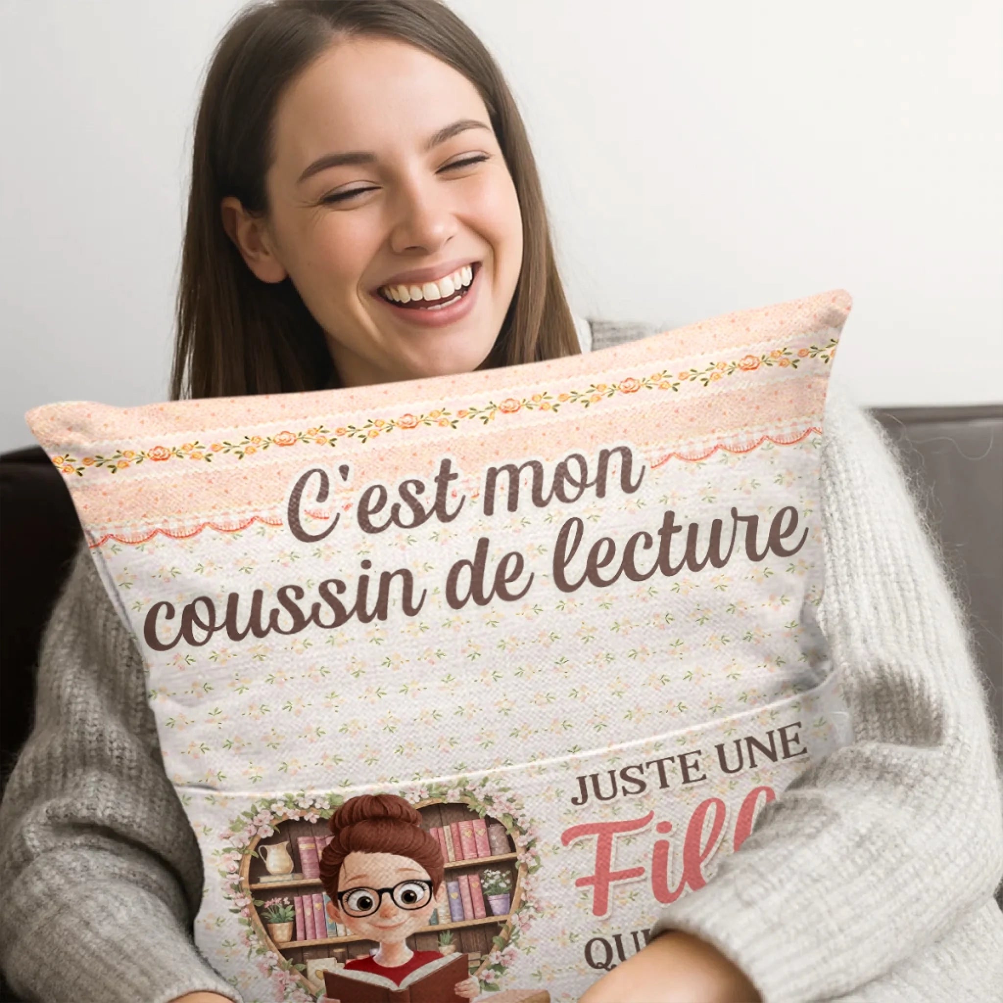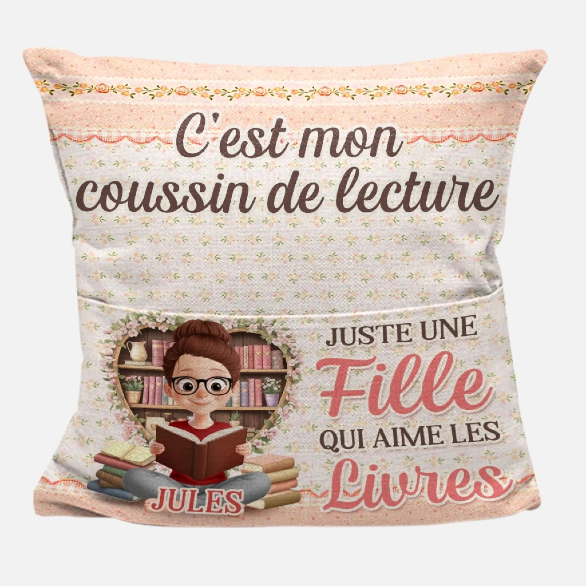Coussin À Poche Personnalisé - Cadeaux Pour Amoureux Des Livres, Rats De Bibliothèque, Lecteurs - Chapitres De Bonheur