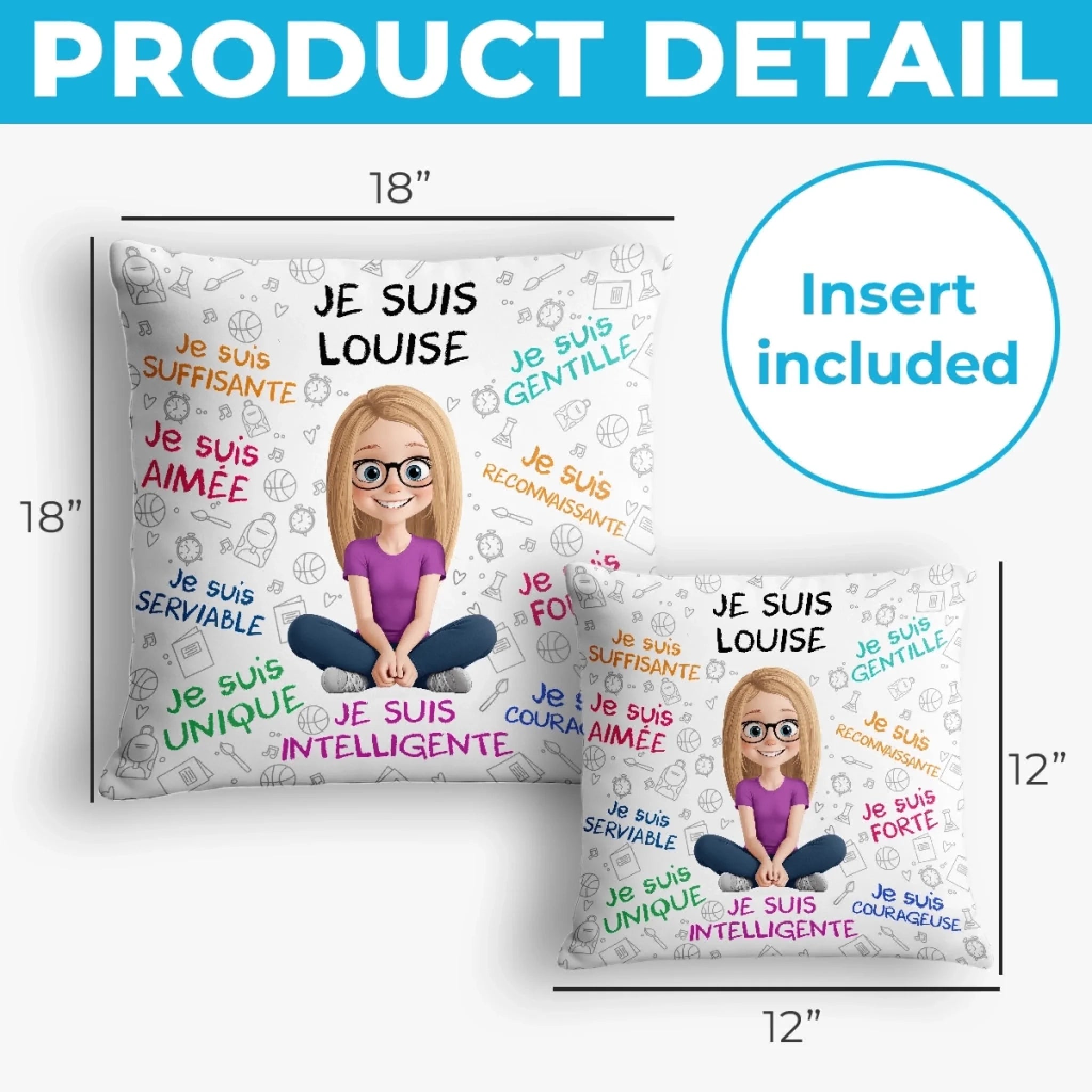 - Coussin : Insert inclus.