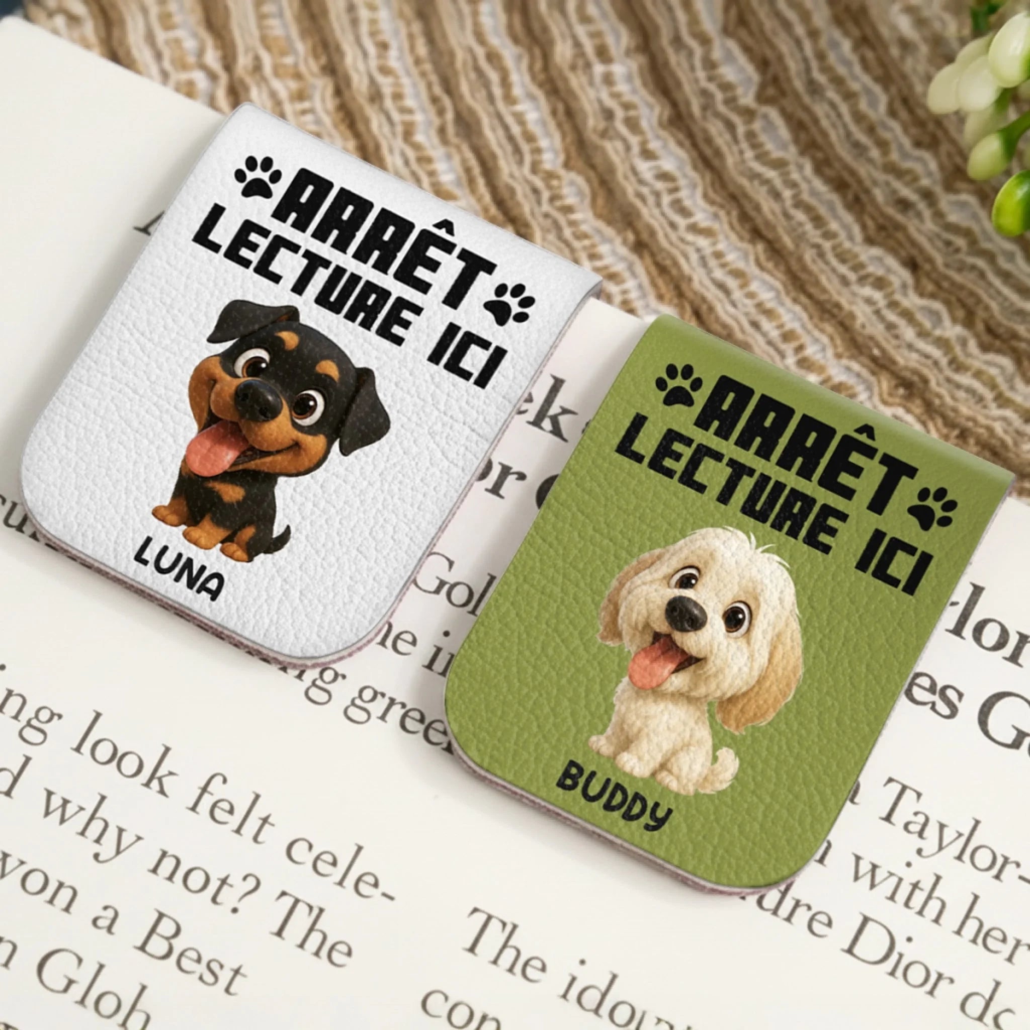Marque-Page Magnétique En Cuir Personnalisé - Cadeaux Pour Amoureux Des Livres, Rats De Bibliothèque, Amoureux Des Chiens Et Chats, Papa Et Maman Chiens, Propriétaires De Chats - La Lecture Est Meilleure Avec Des Pattes