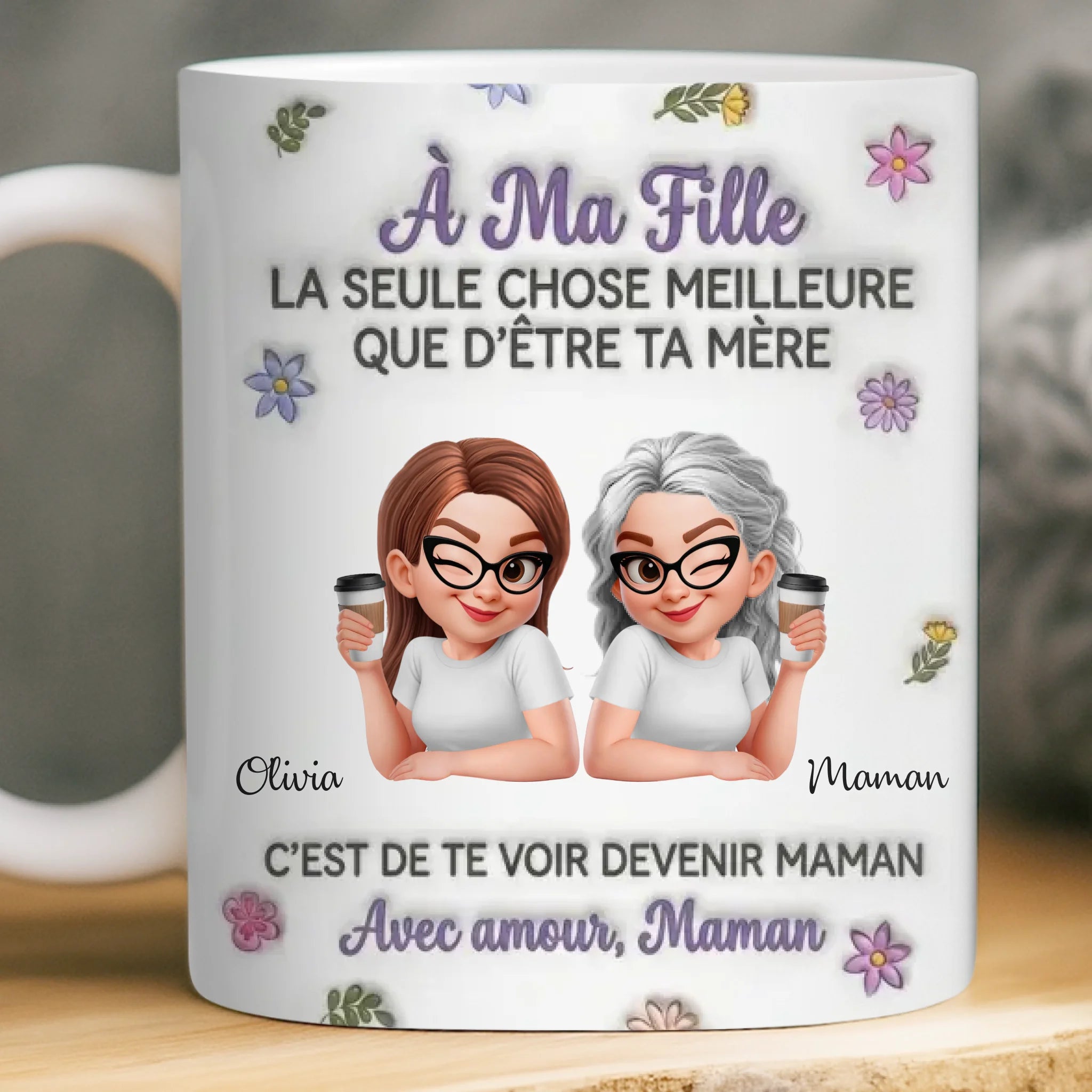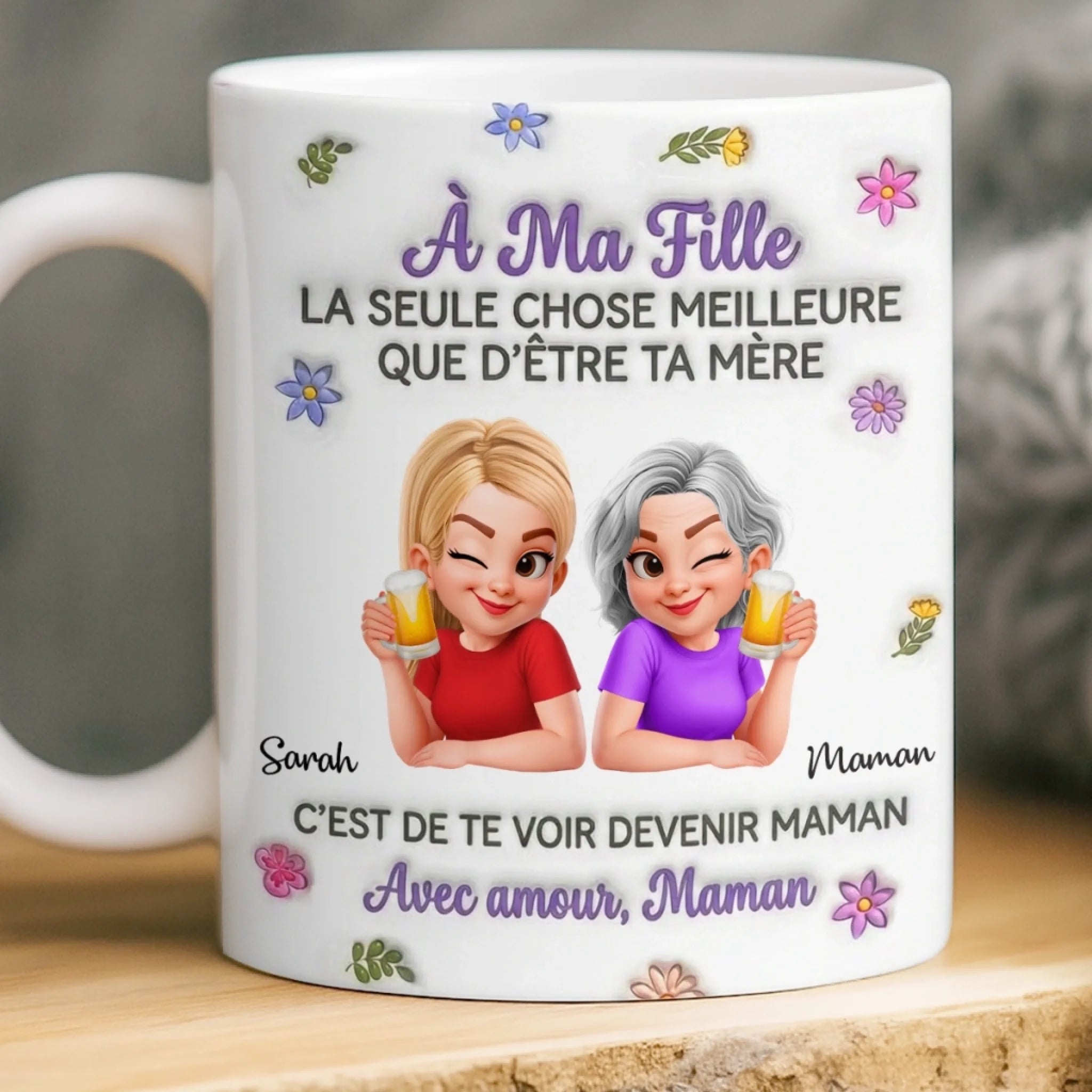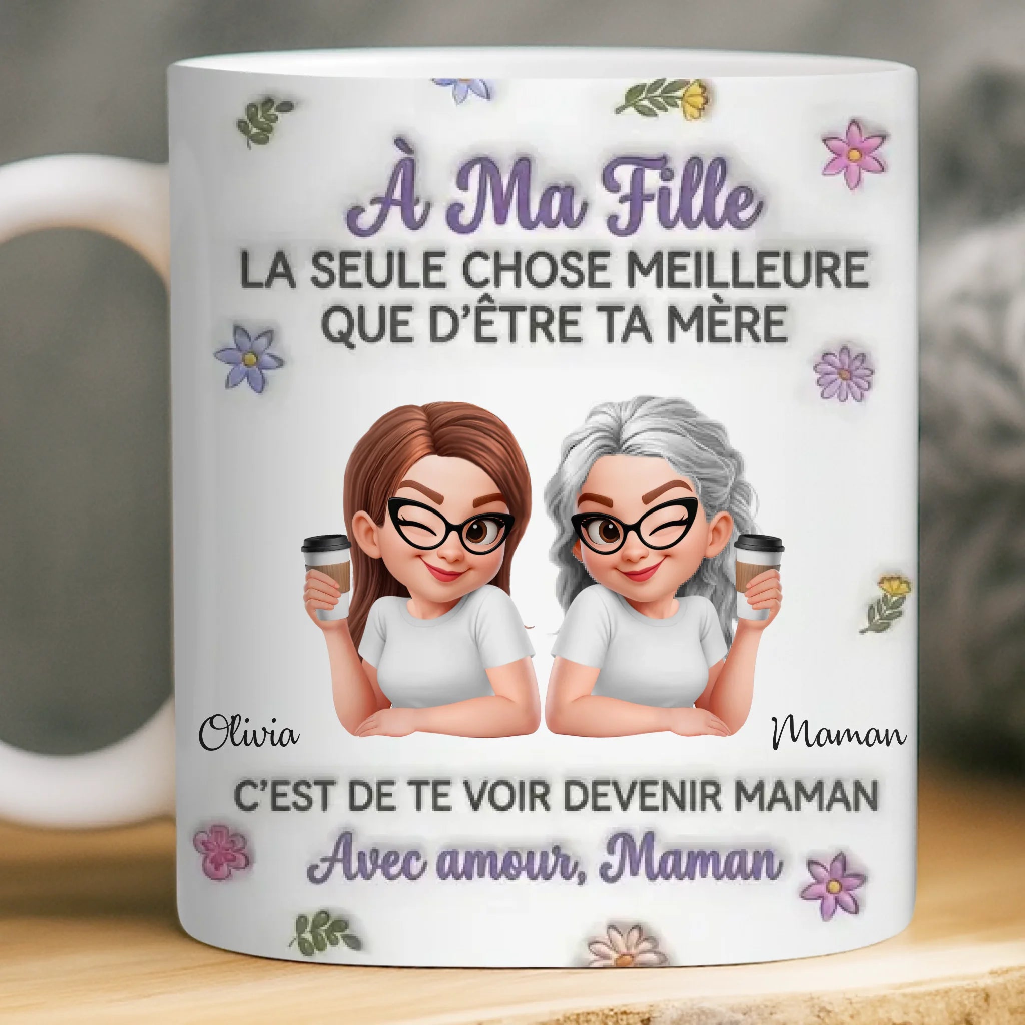 Mug Effet 3D Imprimé Personnalisé – Cadeau Pour Maman, Fille – Reine De Ma Famille