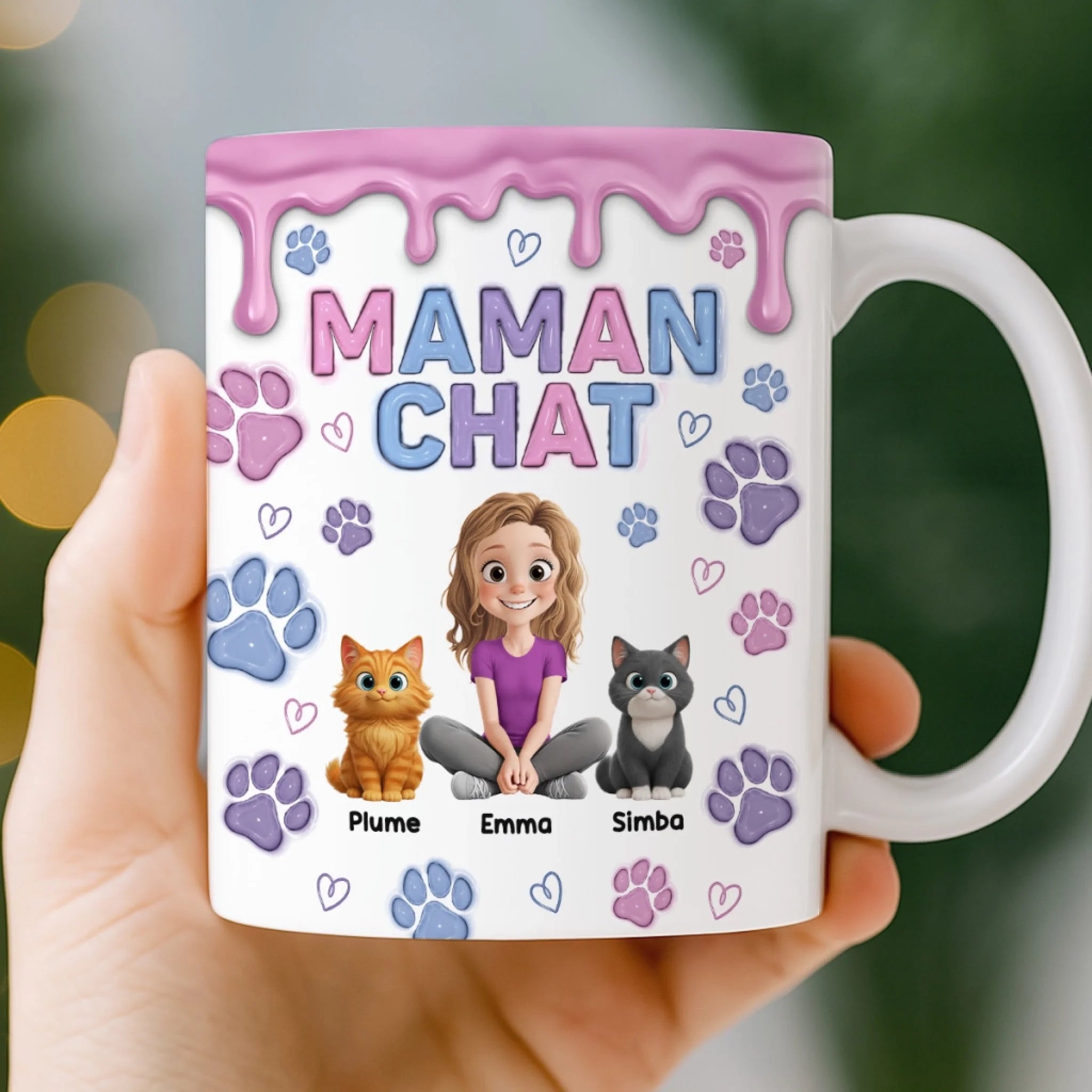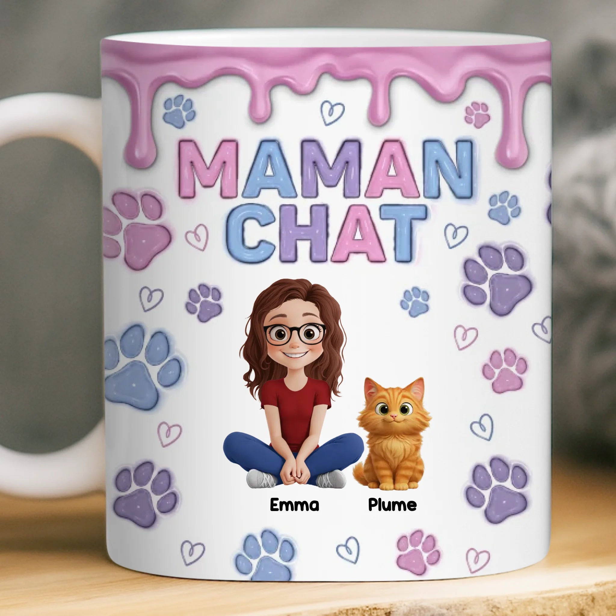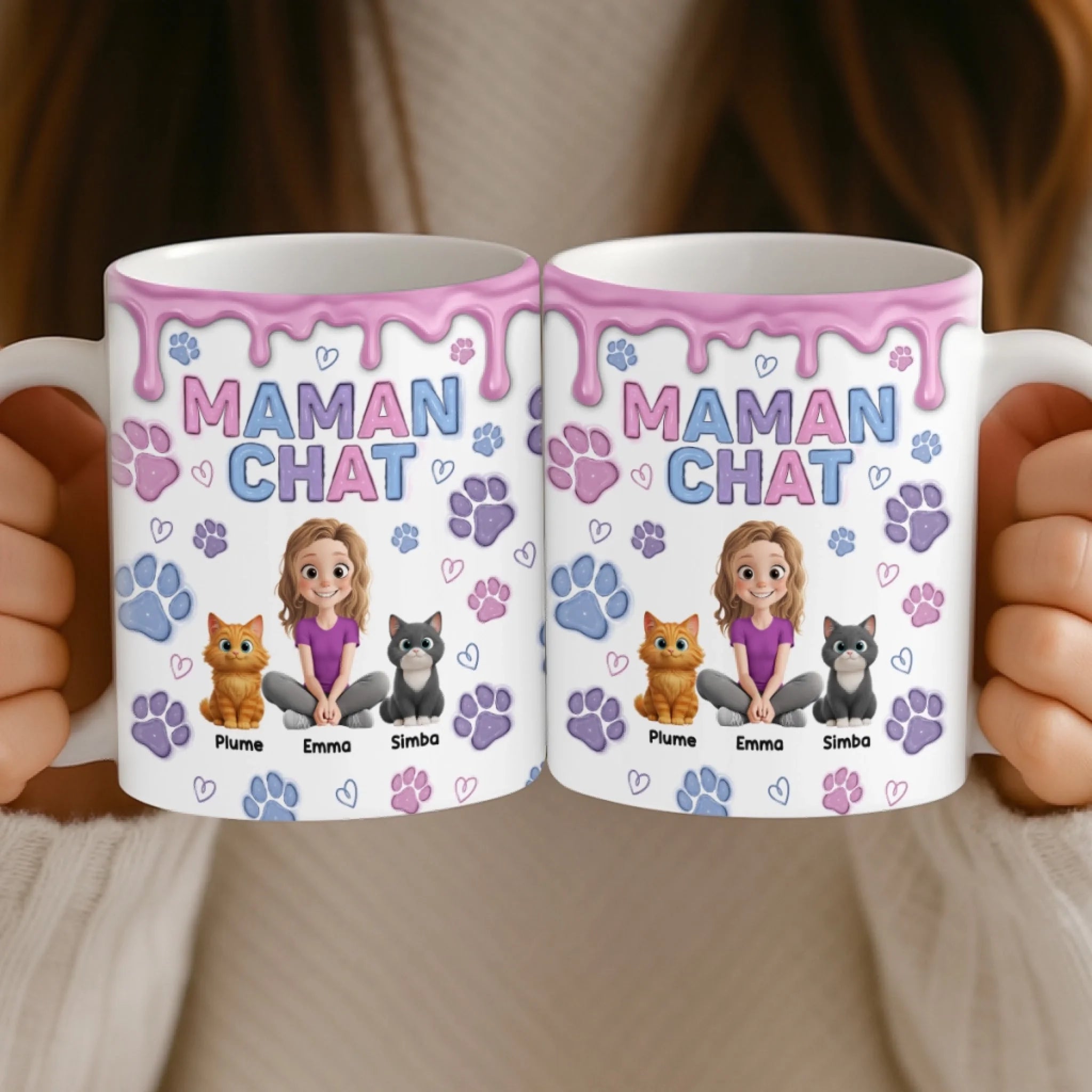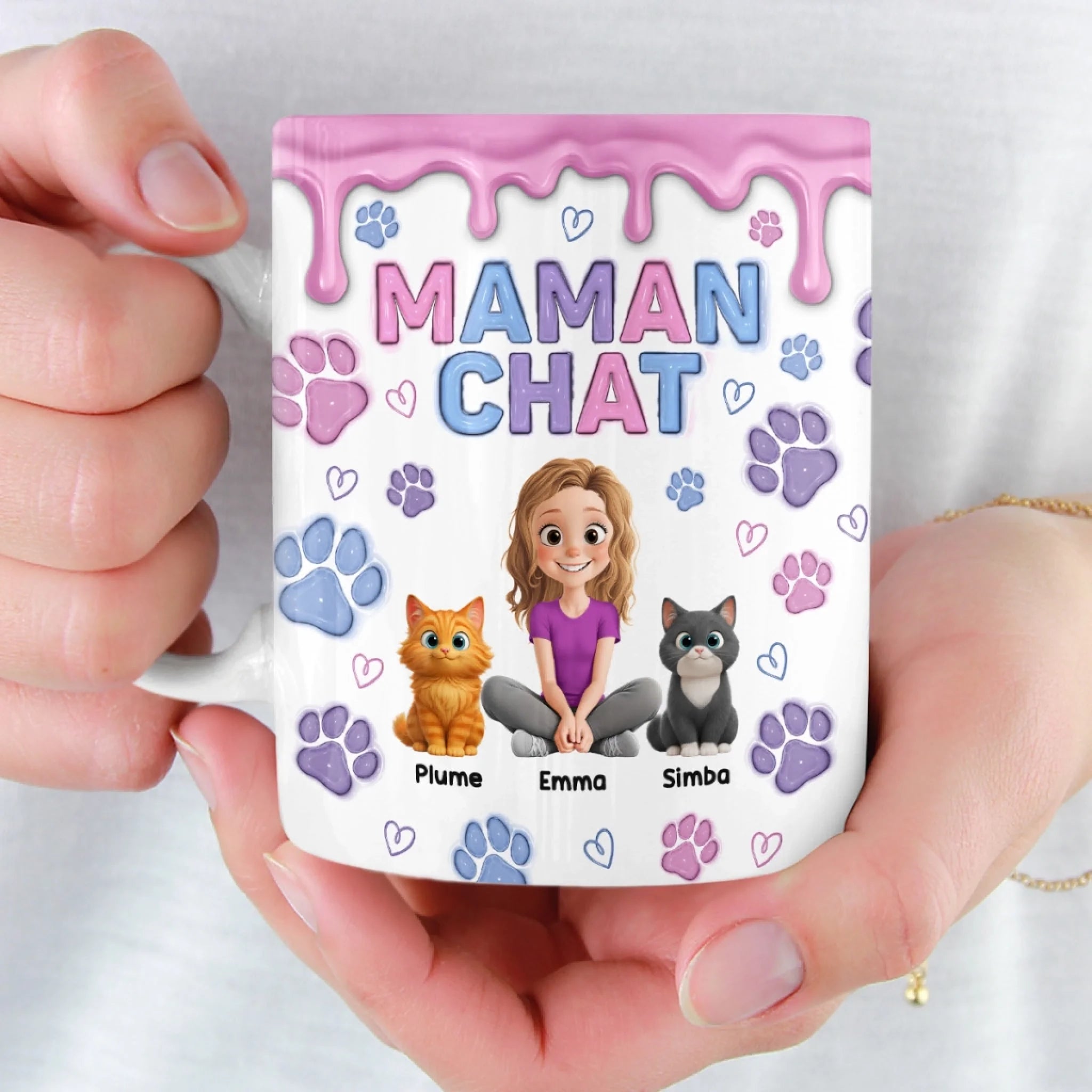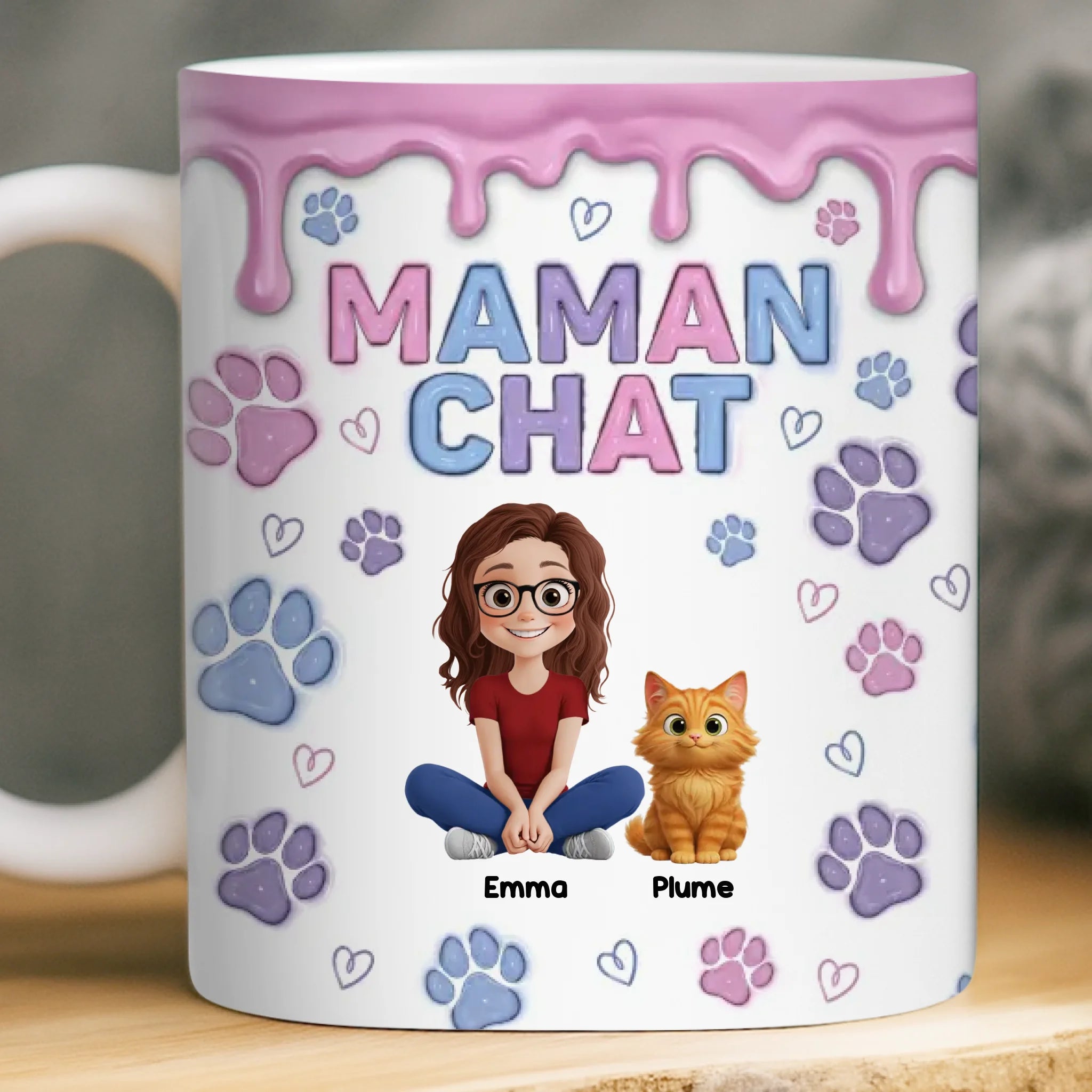 Mug Personnalisé À Effet Imprimé 3D Gonflé - Cadeaux D’Anniversaire Pour Amoureux Des Chiens, Papa Et Maman Chiens - L’Amour Se Rassemble Avec Des Pattes Et Des Cœurs