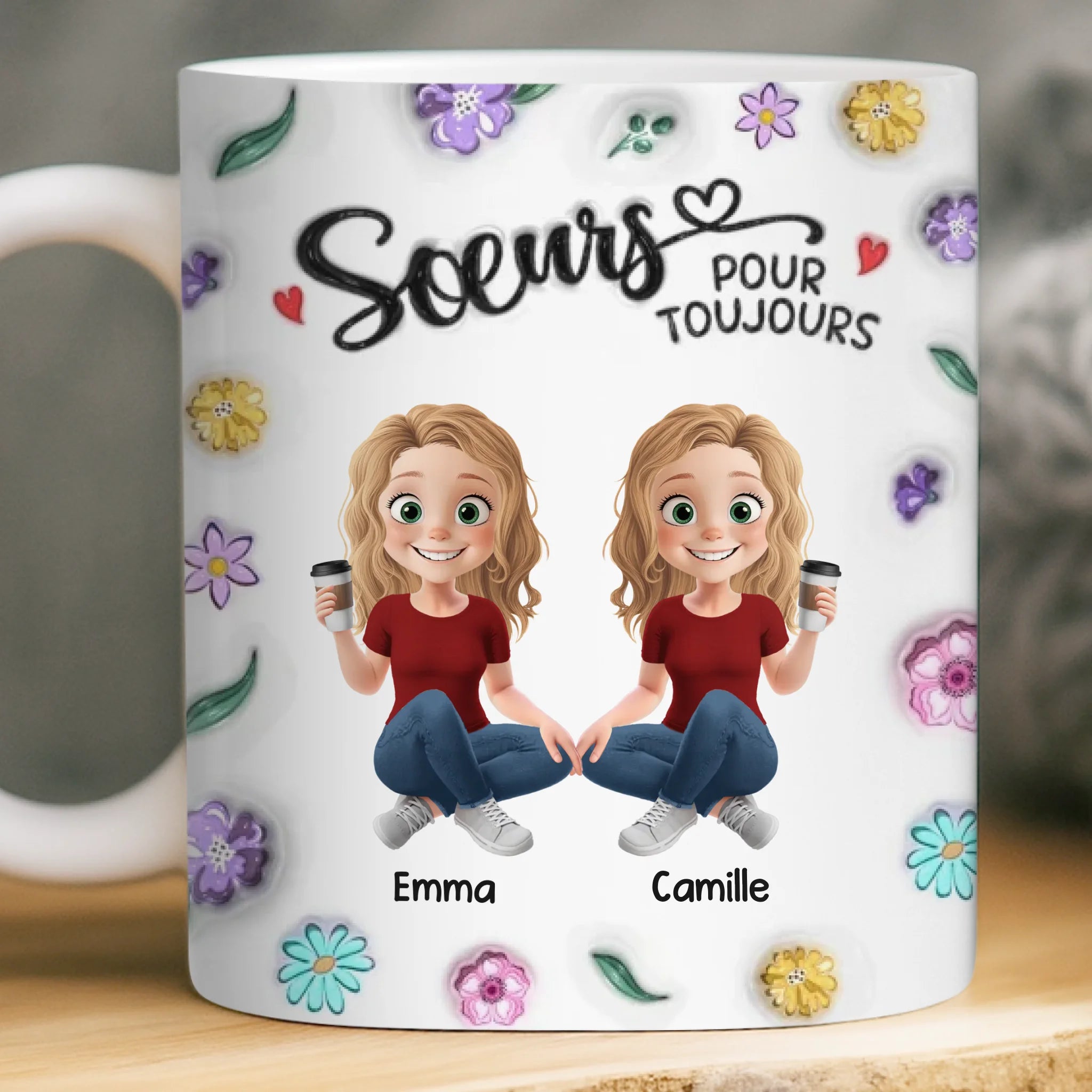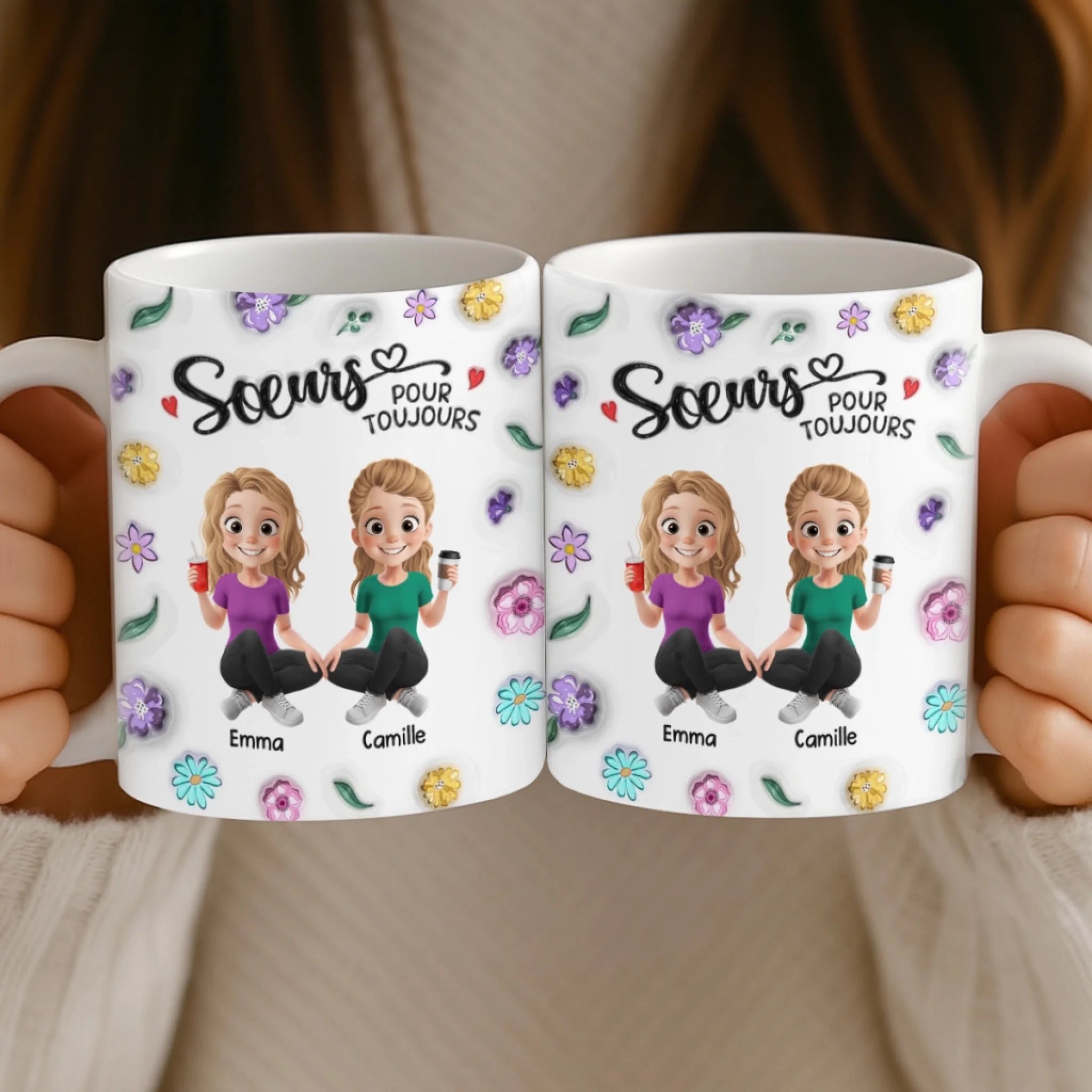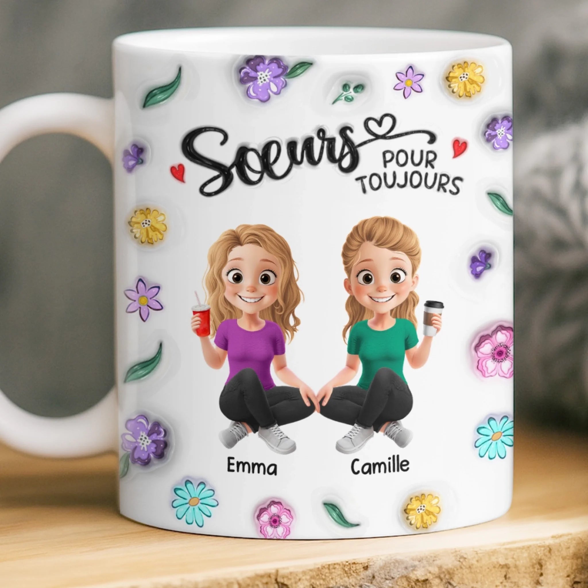 Mug Personnalisé À Effet Imprimé 3D Gonflé - Cadeaux D’Anniversaire Pour Meilleures Amies, Femmes, Sœurs, BFF - Caféine Et Confidences