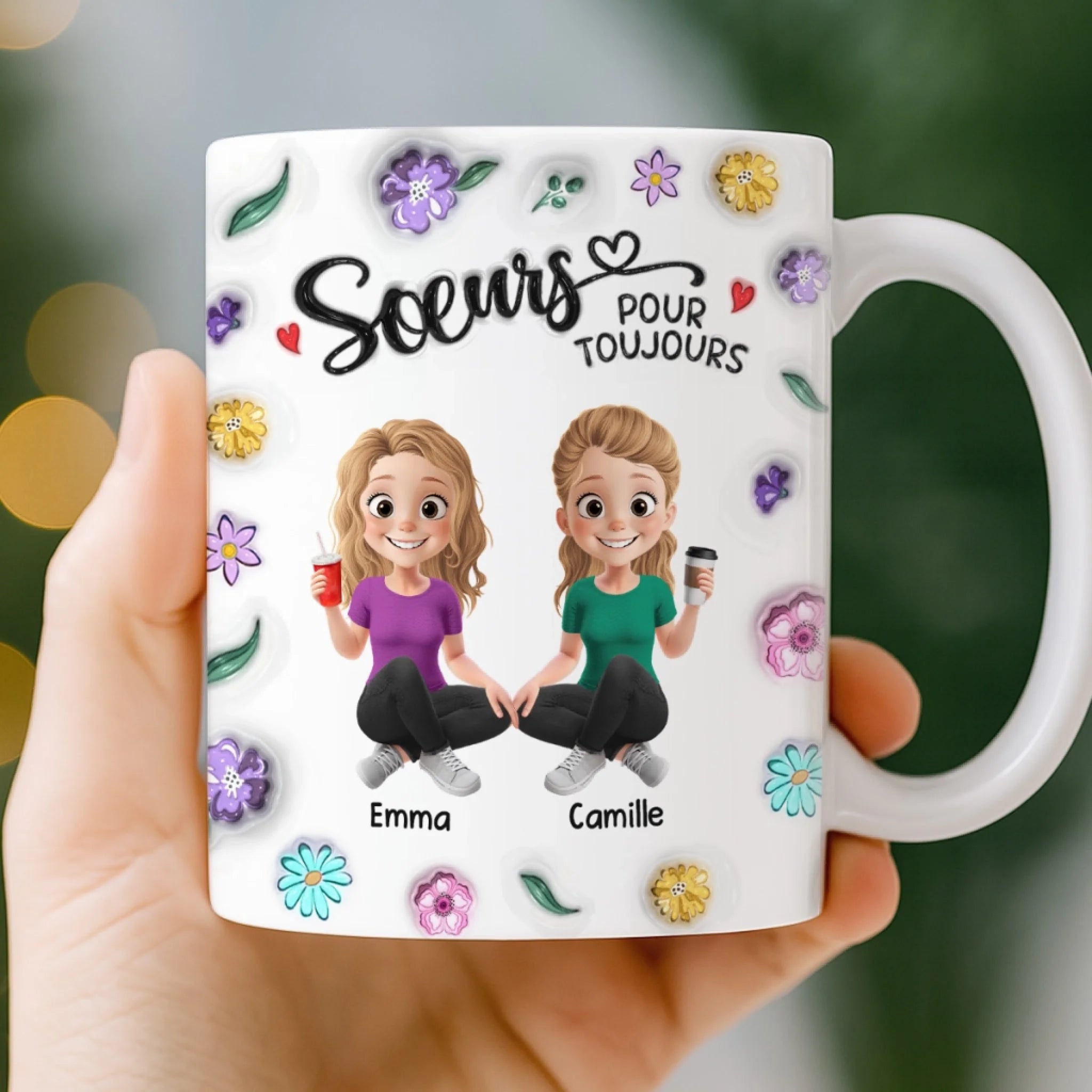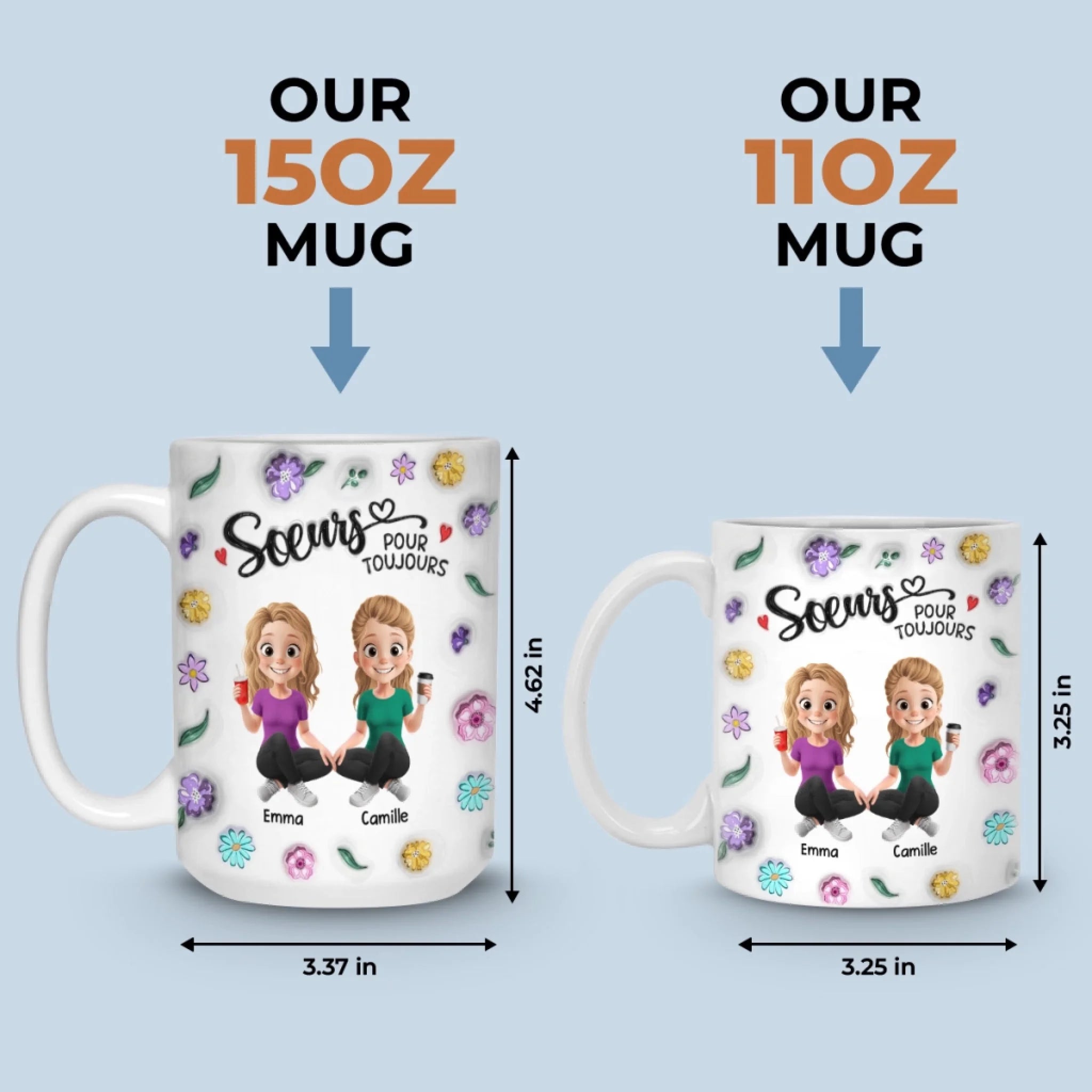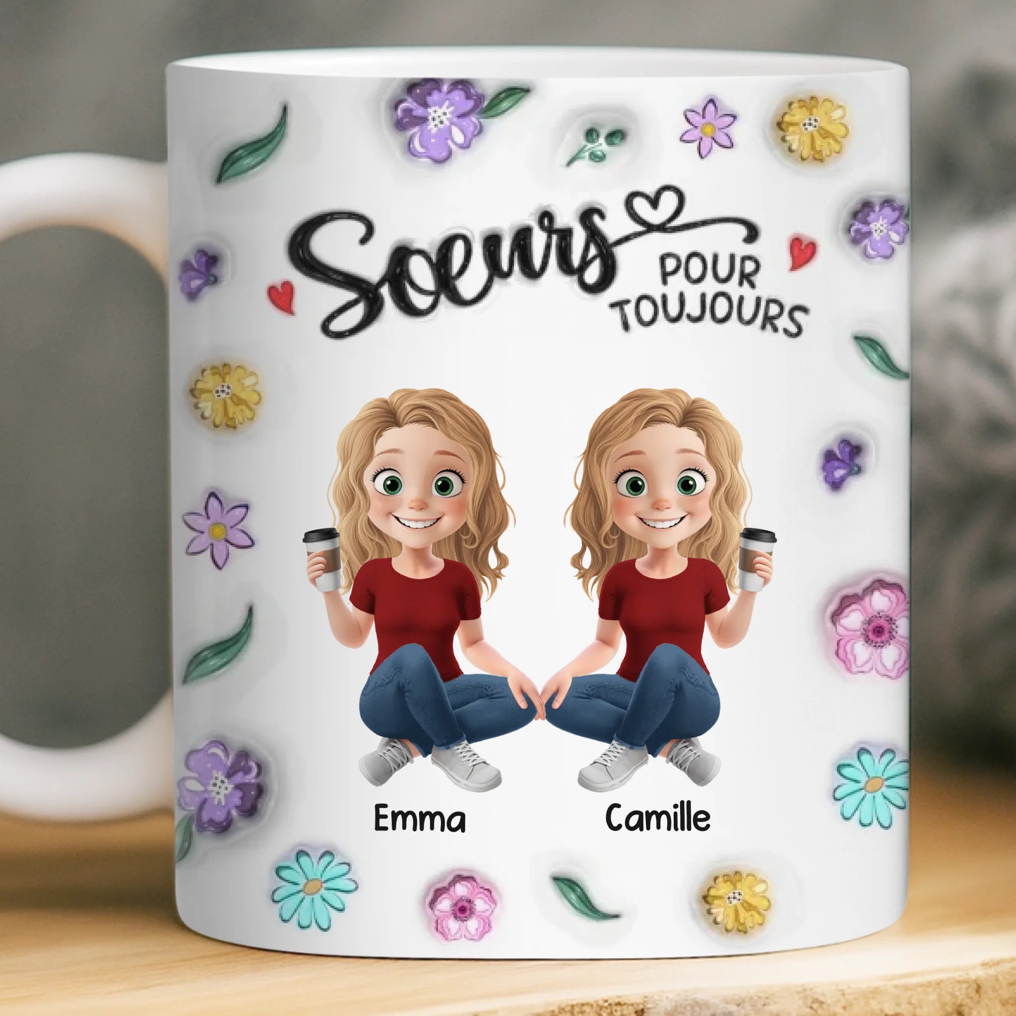 Mug Personnalisé À Effet Imprimé 3D Gonflé - Cadeaux D’Anniversaire Pour Meilleures Amies, Femmes, Sœurs, BFF - Caféine Et Confidences