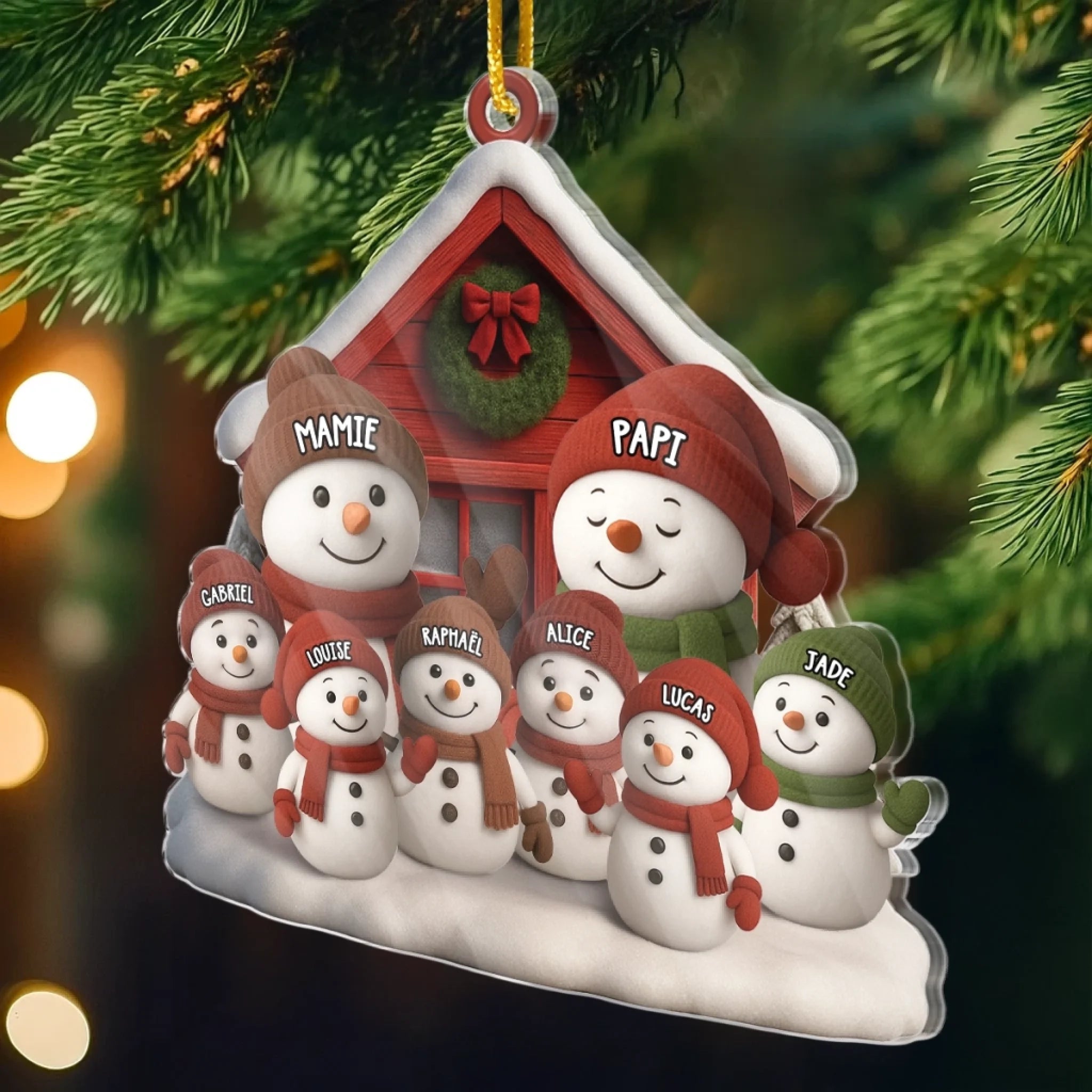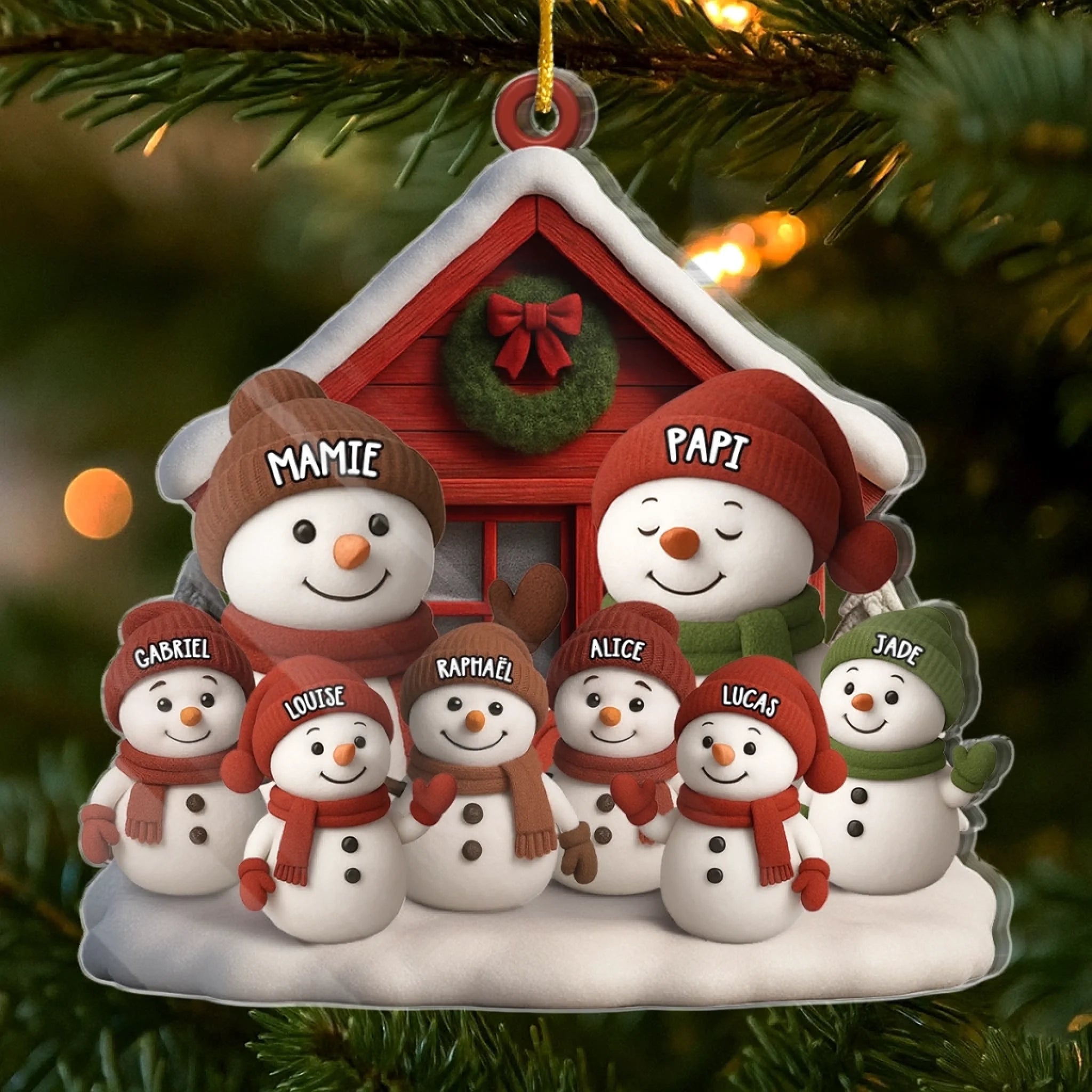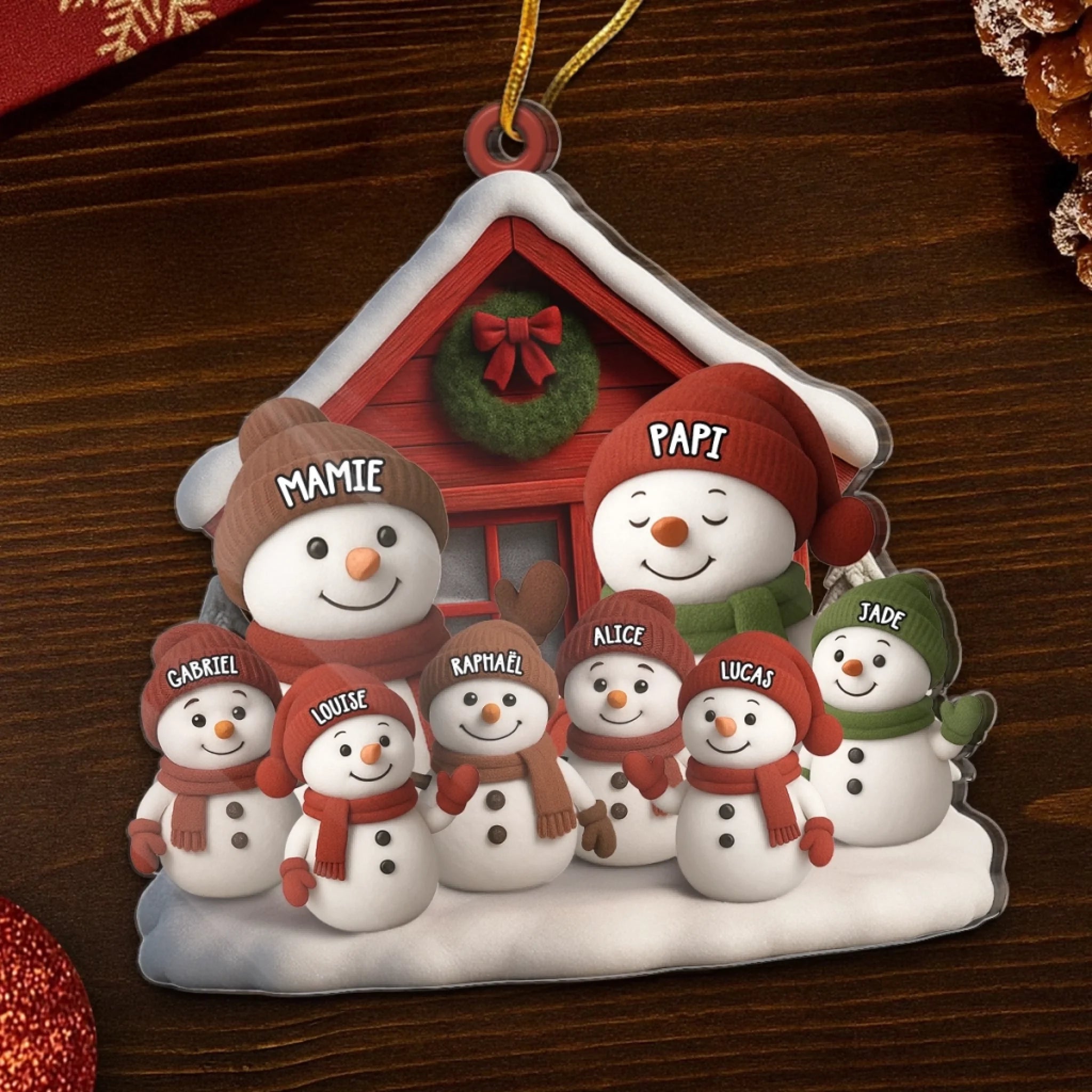 Ornement En Acrylique Bonhomme De Neige Personnalisé - Cadeaux De Noël Et D’Anniversaire Pour Maman, Papa, Frère, Sœur, Enfants - Notre Famille Enneigée, Toujours Chaleureuse De Cœur
