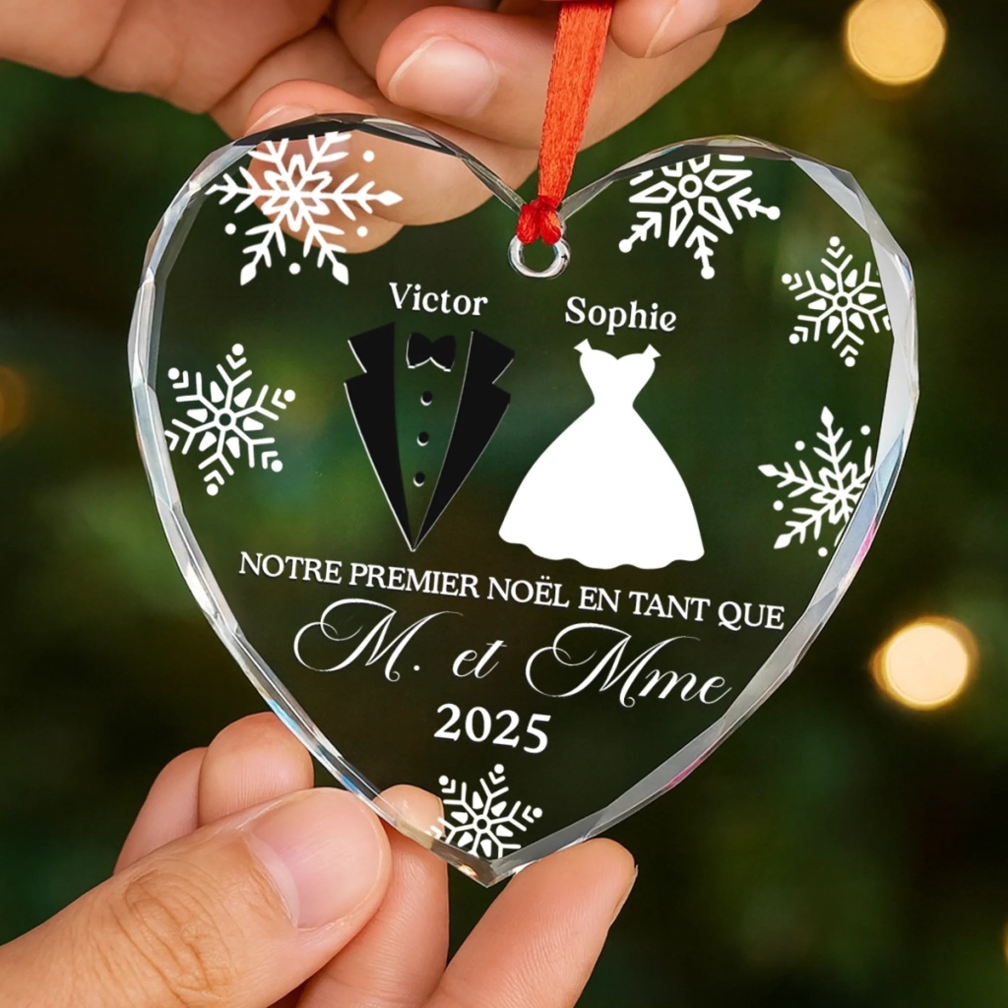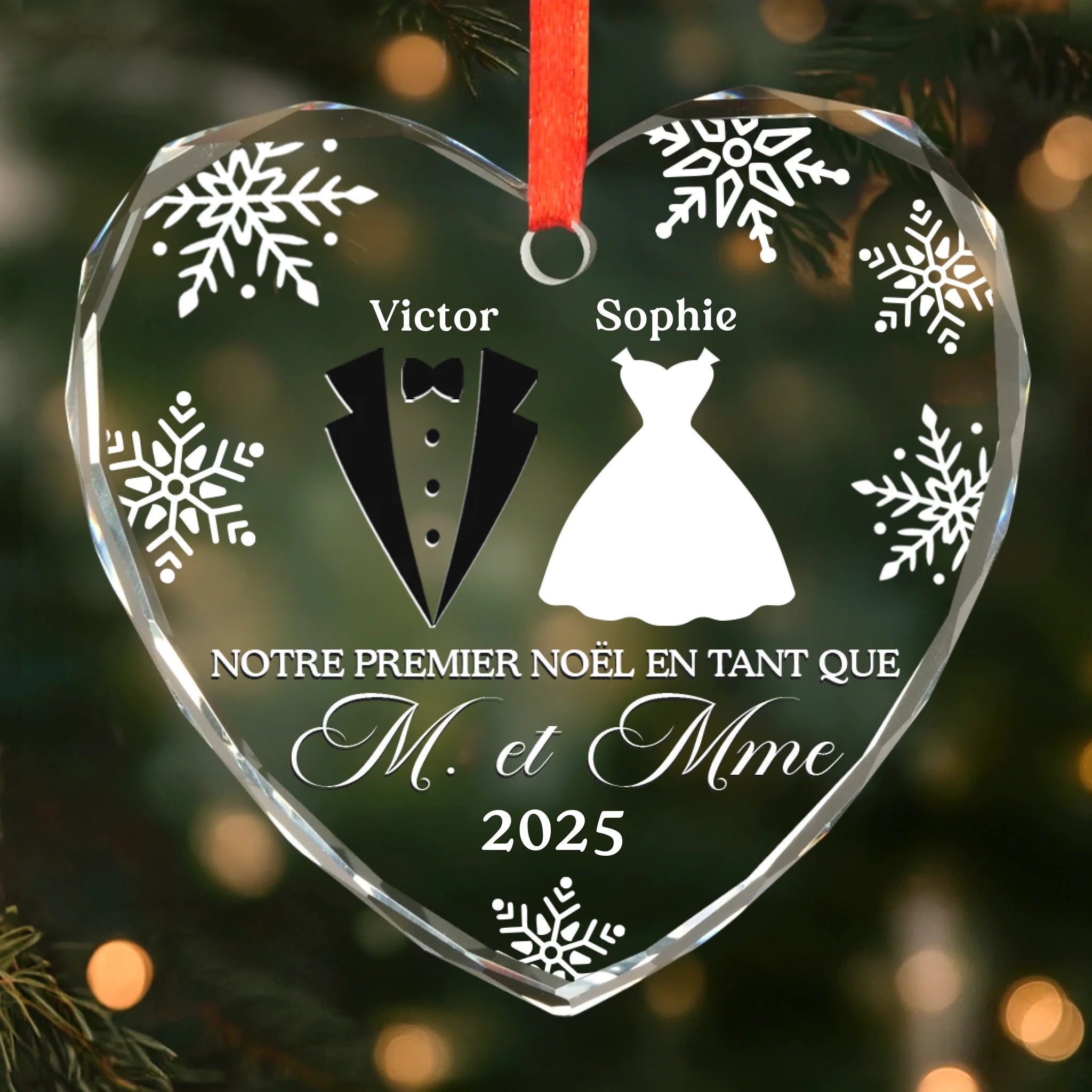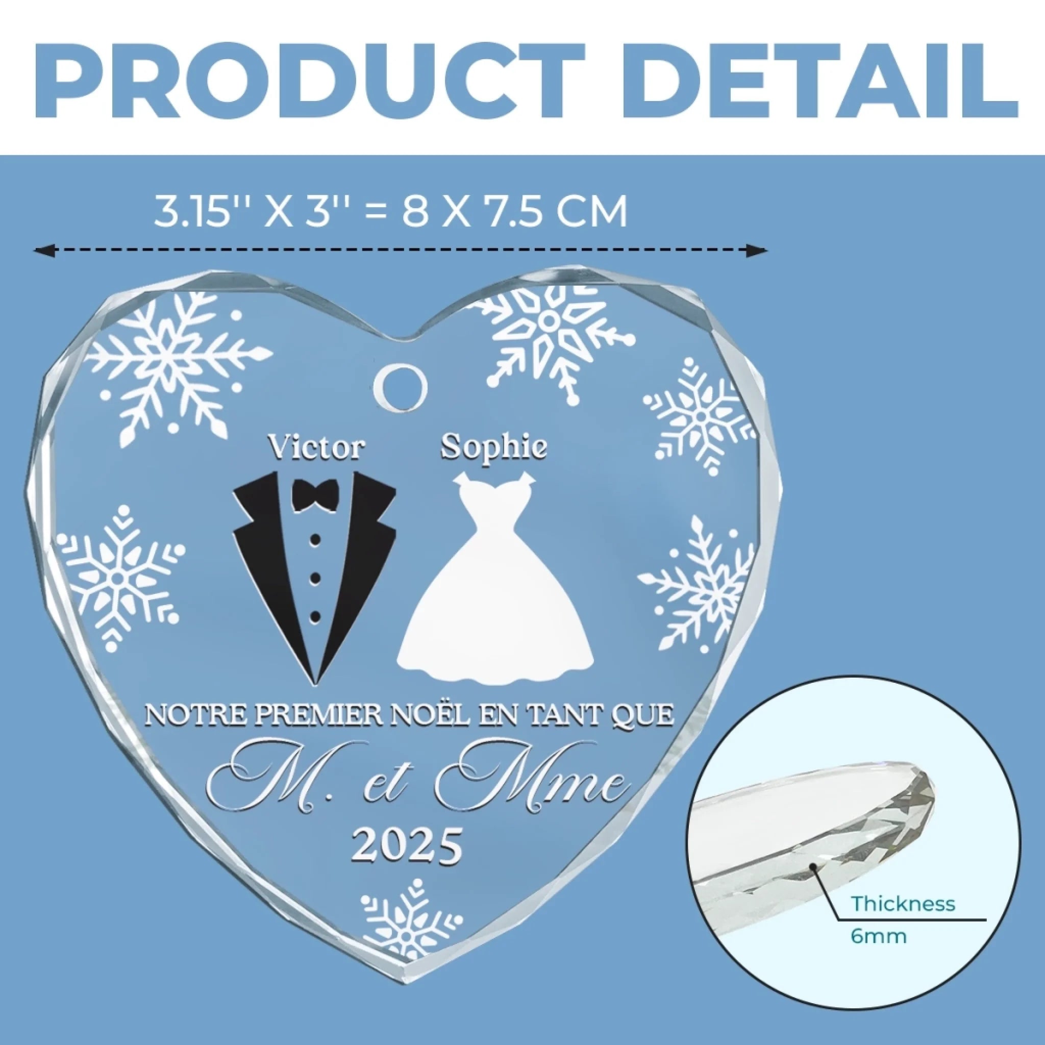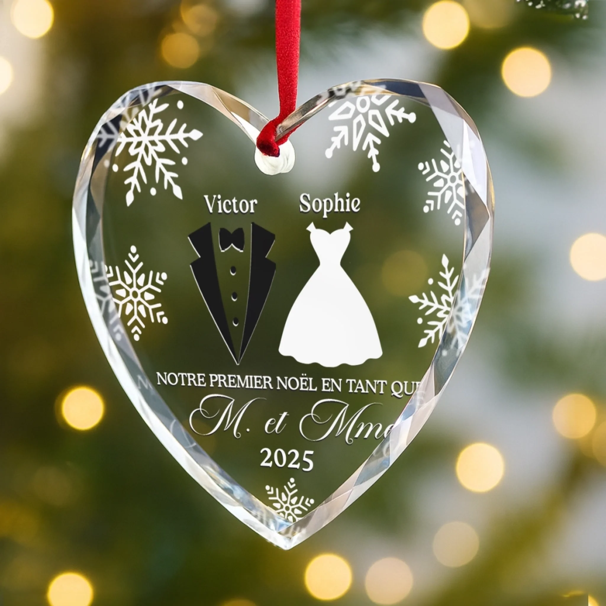Ornement En Verre En Forme De Cœur Personnalisé – Cadeaux D’Anniversaire, De Noël Et De Mariage Pour Mari Et Femme, Pour Lui Et Pour Elle – Notre Premier Noël En Tant Que Mari Et Femme