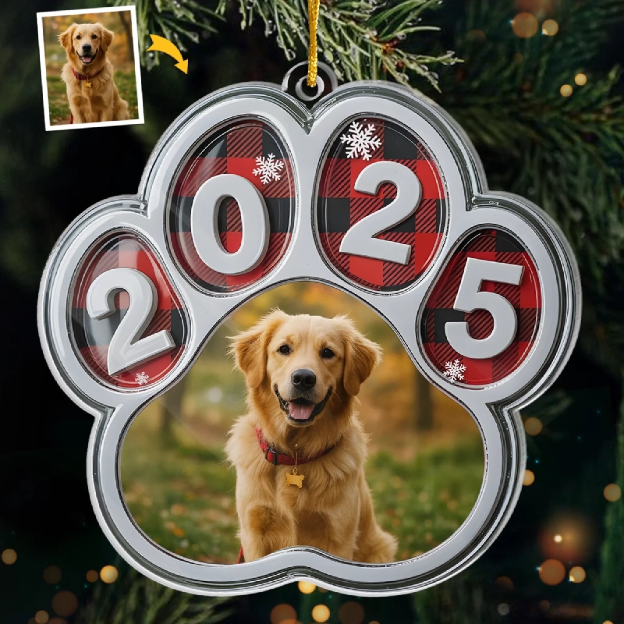 Ornement photo en acrylique personnalisé – Cadeaux de Noël commémoratifs et de sympathie pour chiens et chats – Toujours à côté de mon âme