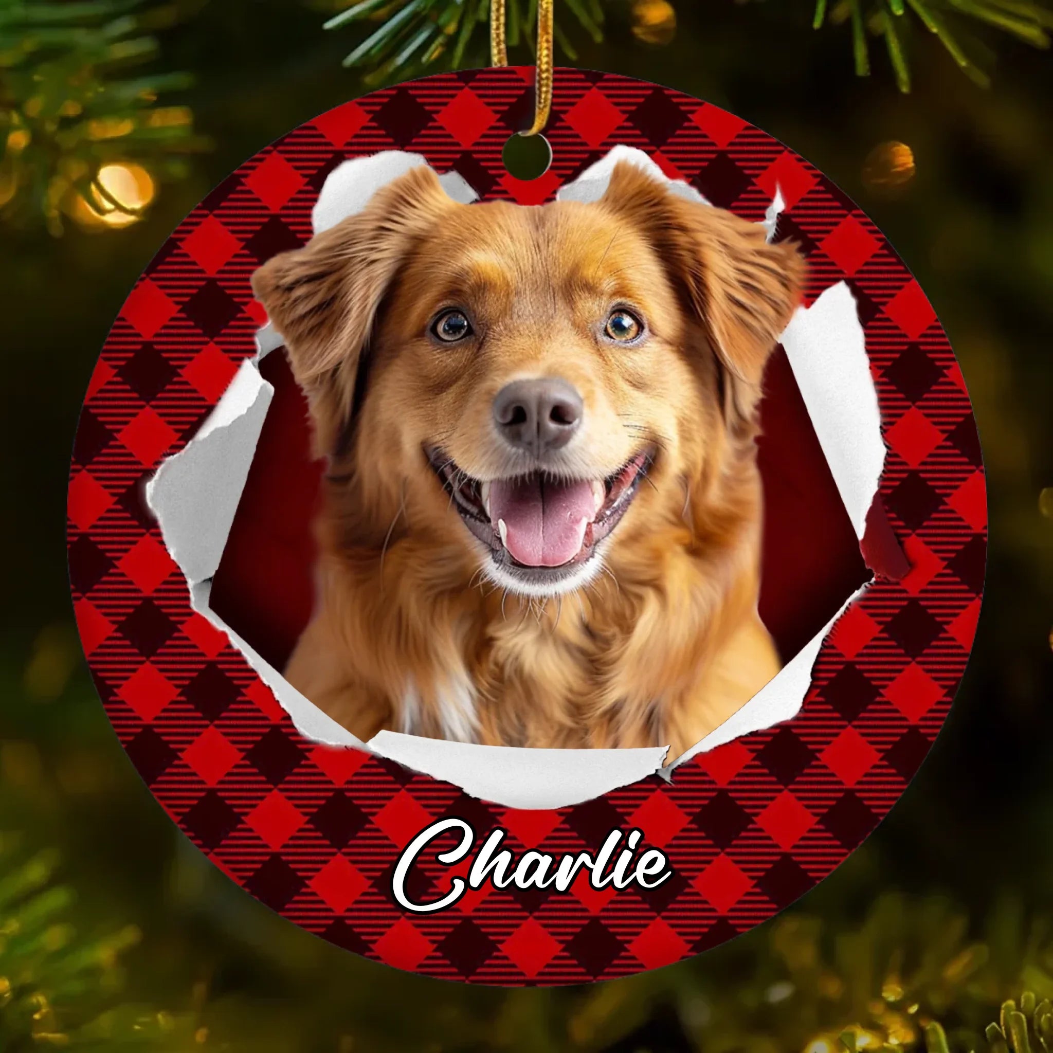 Ornement photo en céramique personnalisé – Cadeaux de Noël ou d'anniversaire pour les amoureux des chiens et des chats, propriétaires d'animaux – Les files d'attente frétillent, les cœurs s'illuminent