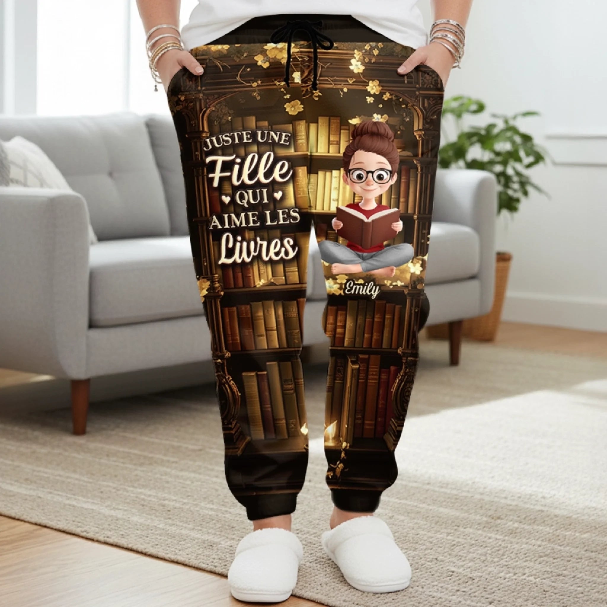 Pantalon De Survêtement Unisexe Personnalisé - Cadeaux Pour Amoureux Des Livres, Rats De Bibliothèque, Lecteurs - Juste Une Fille Et Ses Livres