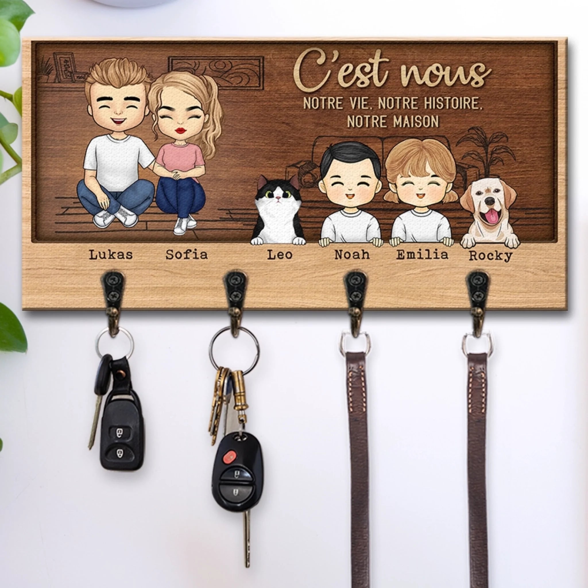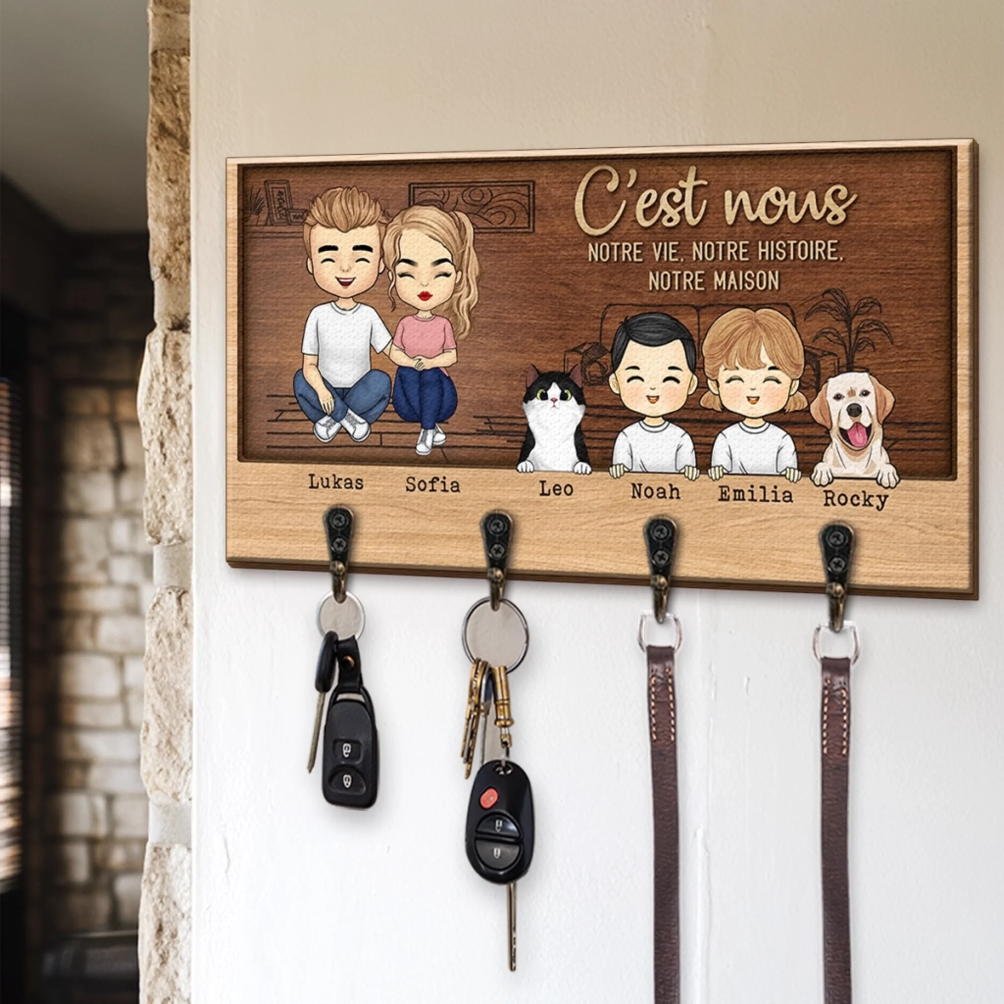 Les porte-clés personnalisés sont une excellente idée de cadeau pour une pendaison de crémaillère ou un jeune couple. Pratique et décoratif, ce porte-clés mural vous aide à garder tous vos essentiels au même endroit. Parfait pour organiser l'entrée de votre maison et apporter une touche déco au mur. Ne perdez plus jamais vos clés !