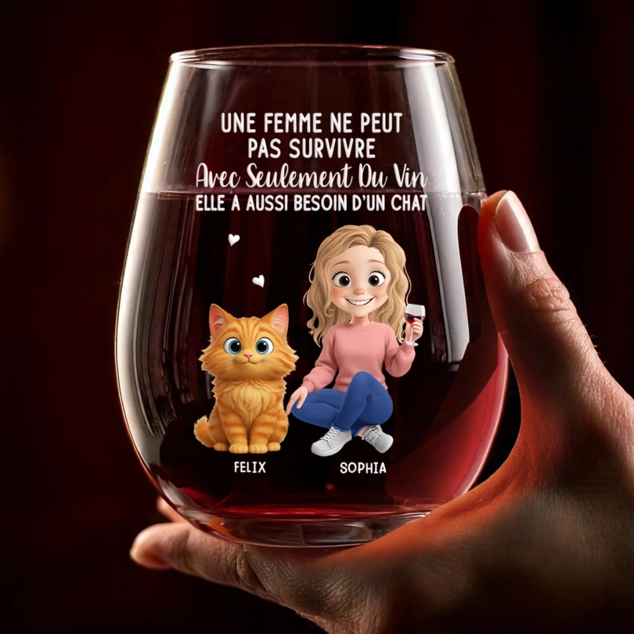 Verre À Vin Personnalisé – Cadeaux De Noël Et D’Anniversaire Personnalisés Pour Les Amoureux Des Chats, Les Mamans Et Papas De Chats – La Vie A Besoin D’un Ronron
